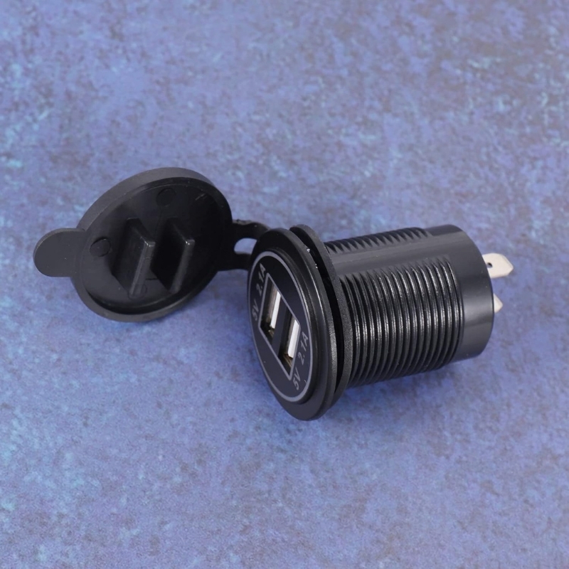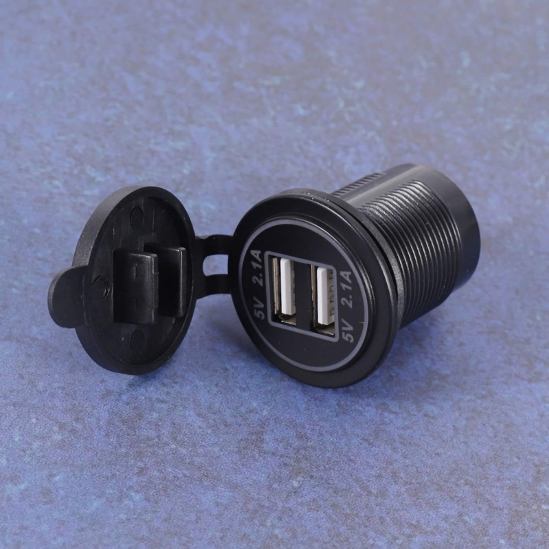 Caractéristiques: • Matériau : PVC stabilisé aux UV • Profondeur : 55 mm • Boîtier : Noir • Diamètre de découpe : 27 mm • Diamètre extérieur : 37 mm • Volt d'entrée : 12 V/24 V. • Volt de sortie : 5 V 4,8 A combinés (2,4 A pour chaque port) • Montage : affleurant