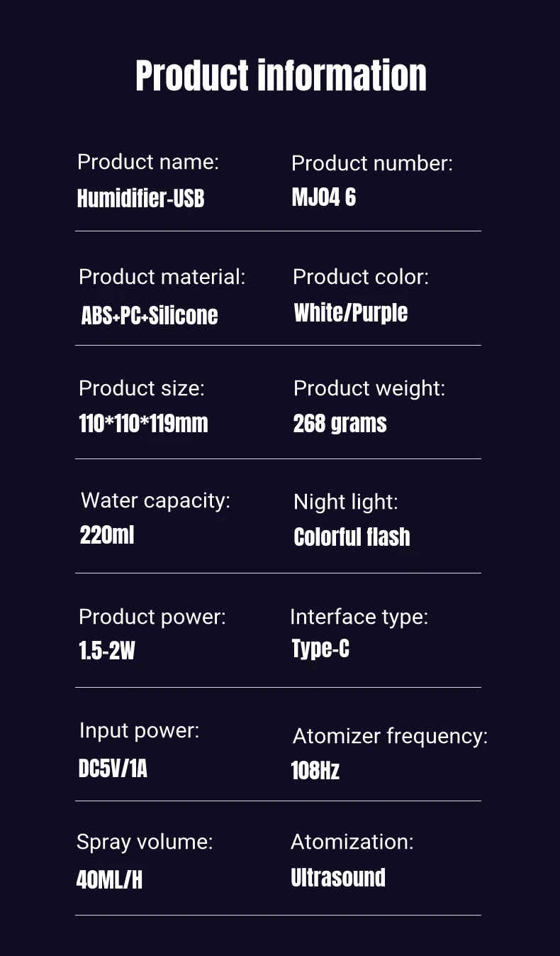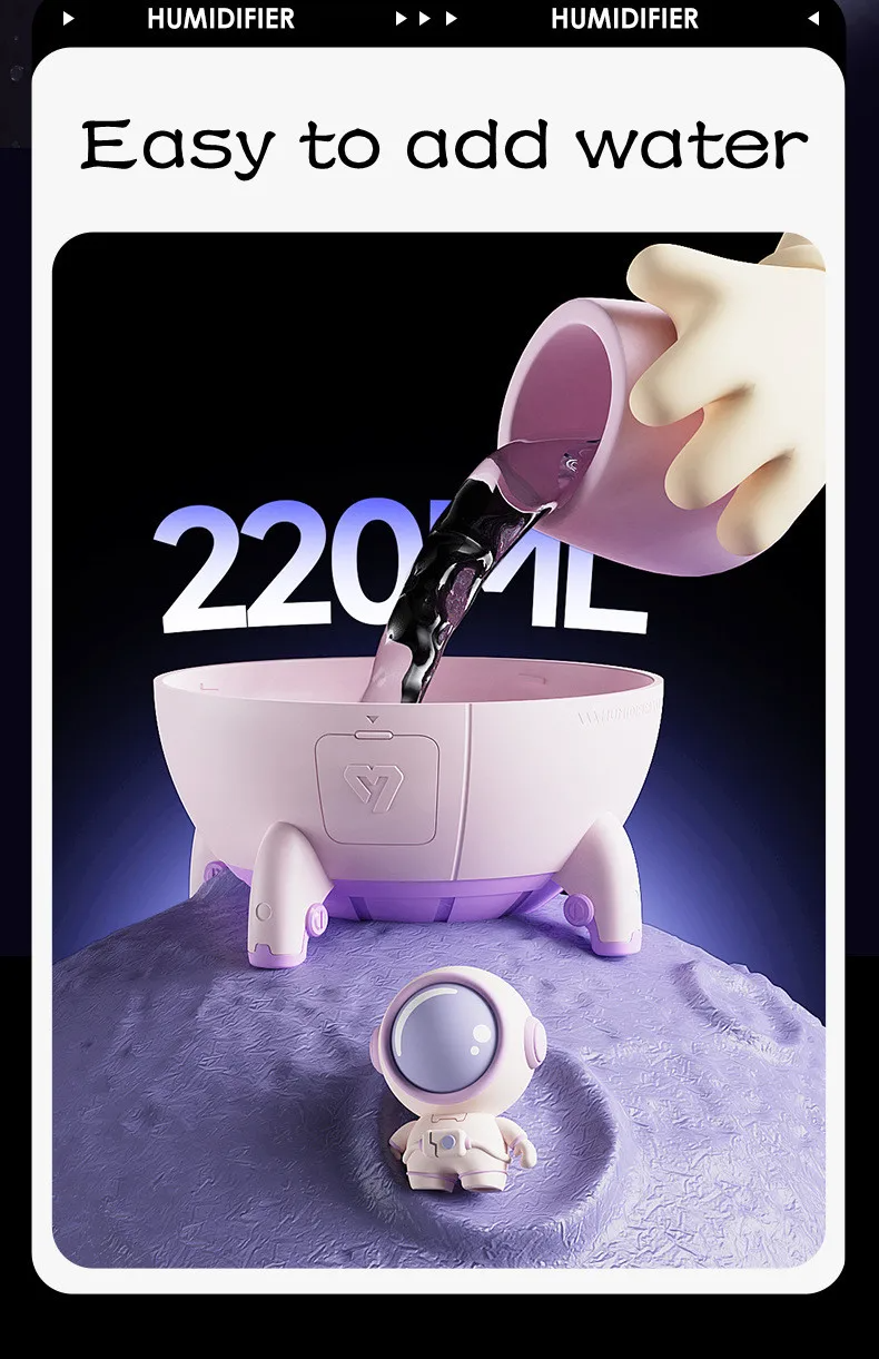 Humidificateur d'air électrique Spacecraft avec lumière LED 220ml