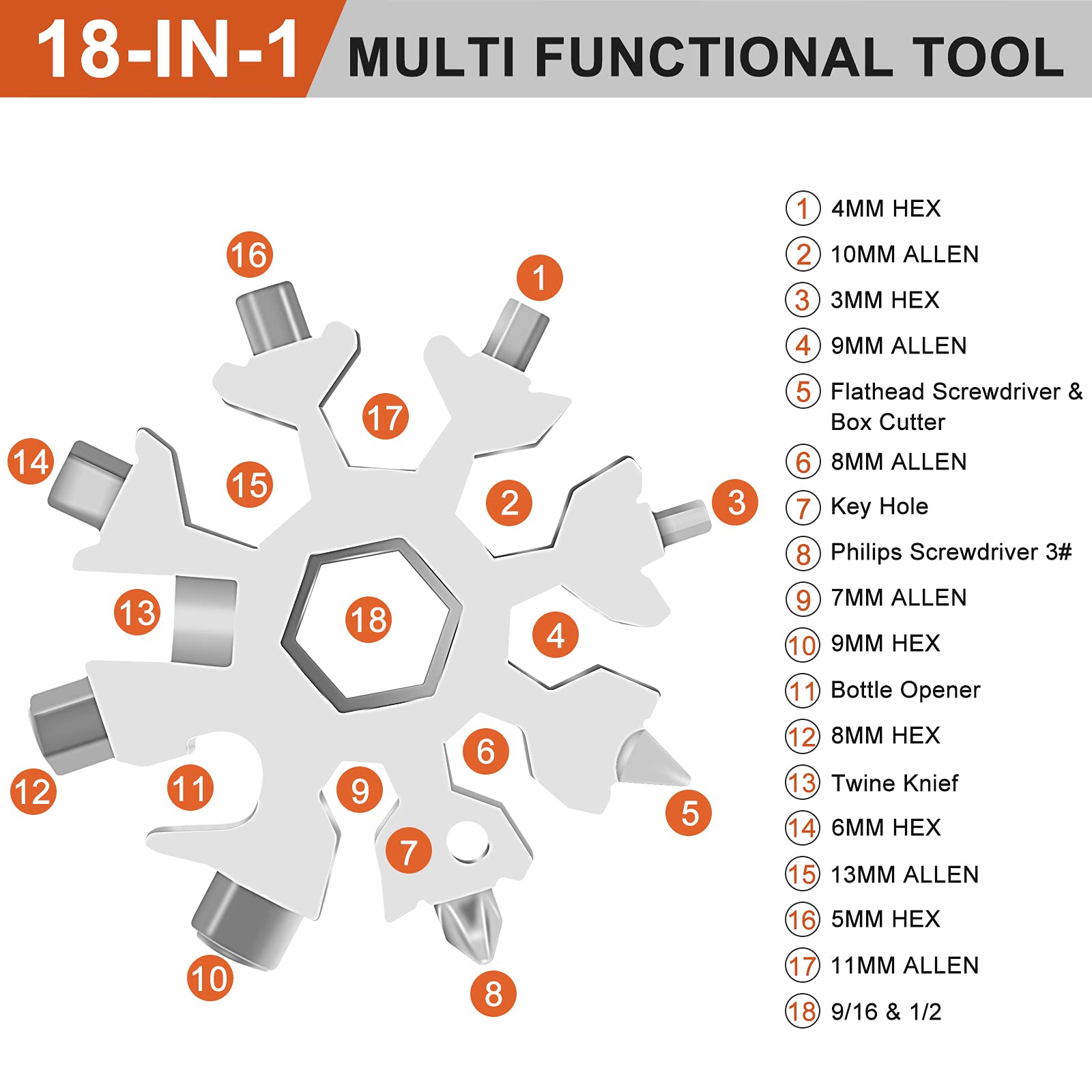 outil porte-clés multi-fonction 18 en 1 en acier inoxydable