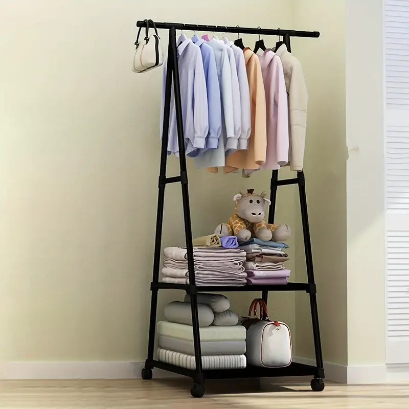 Porte-manteau en métal amovible avec roulettes, étagère de rangement multifonction