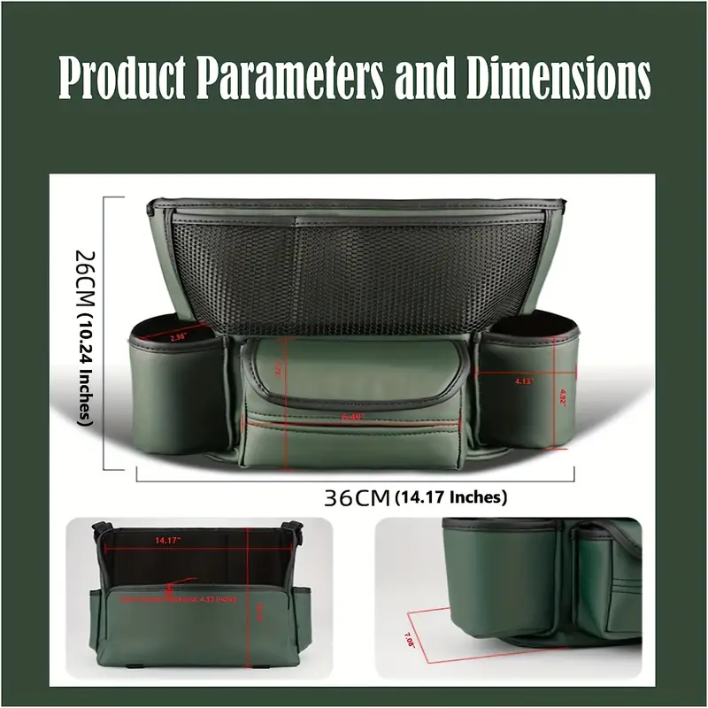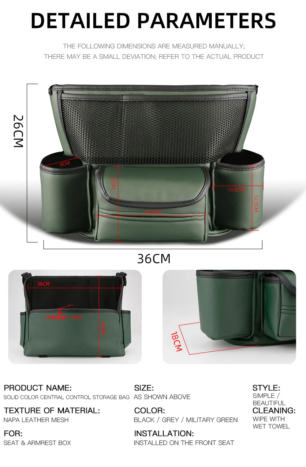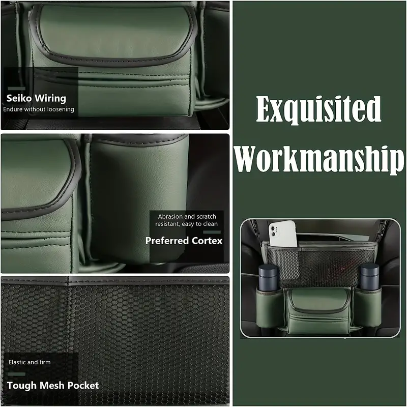 Matériel: Cuir Nappa • Couleur: Noir/Vert • Taille: 36*26* 18CM • Convient pour : Convient à la plupart des voitures • Le paquet comprend: 1 x Sac de rangement pour siège de voiture