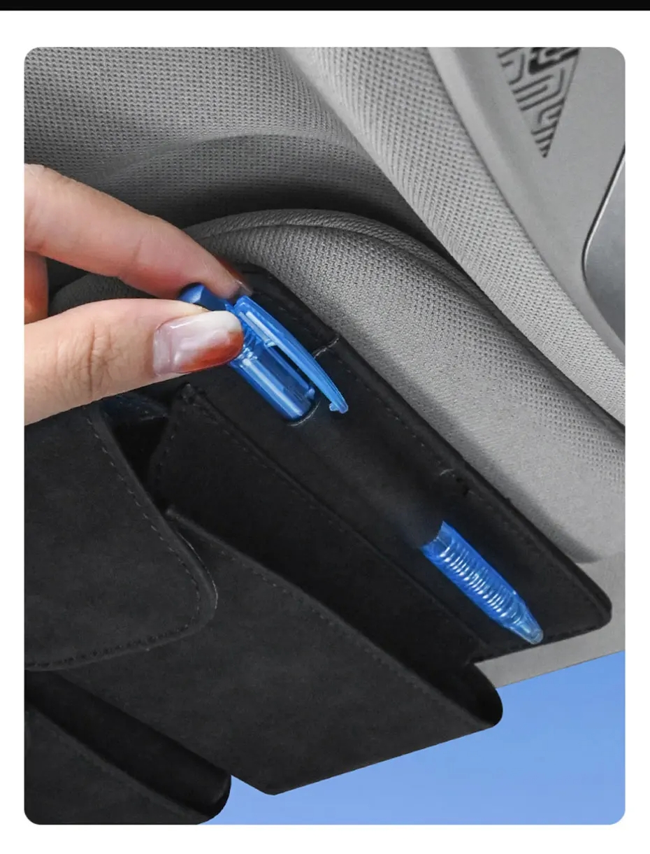 تنظيم فائق متعدد المهام: يحتوي على مقصورات مخصصة لكل شيء: جيب خاص للمناديل الورقية، حافظة نظارات آمنة، جيوب متعددة لبطاقات الوقود والبطاقات البنكية، وحامل للأقلام.