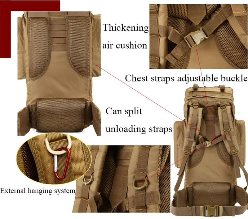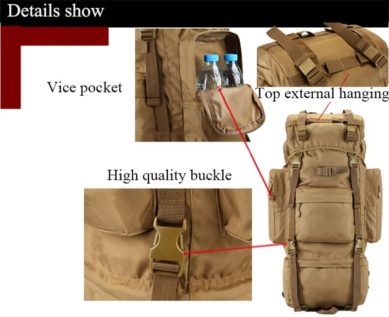 •217 تقييم•تم بيع +1KSac à dos Randonnée professionnel en toile de Camouflage étanche à double épaule 90 L – kaki