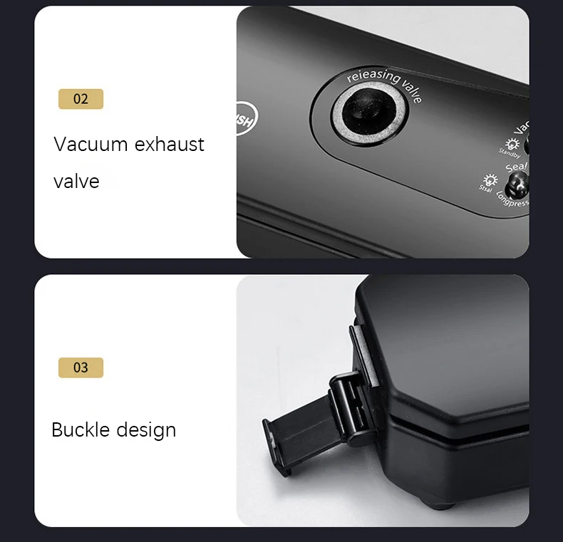 À propos de cet article • 【Conseils Chaleureux】 - - 1. S'il vous plaît placer le sac à vide sur une éponge scellée et placez l'ouverture du sac à vide sous un barbeau noir, la nourriture dans le sac ne doit pas dépasser les 2 / 3 du sac. 2. Il y a deux méthodes d'utilisation, seulement scellé et sous vide plus scellé. Si l'étanchéité sous vide est nécessaire, vous devez appuyer sur le bouton "étanchéité sous vide". 3. Une fois l'étanchéité sous vide terminée, pensez à ouvrir la vanne de libération. • 【Garder les Aliments Frais】--la machine à sceller sous vide élimine l’air et aide à prolonger la conservation des aliments. Les aliments scellés et stockés dans le réfrigérateur dureront 5 fois plus longtemps et auront toujours le même goût frais que le jour où ils ont été scellés. • 【Économisez de l’argent】--planifiez vos repas quotidiens deux fois plus facilement que les recettes de vos plats préférés, puis économisez l’excédent pour un repas rapide et nutritif le soir de votre journée de travail chargée. Si vous achetez beaucoup d'articles que vous utilisez régulièrement, passez moins de temps et d'argent à l'épicerie. • 【Forte Aspiration】La machine de scellement sous vide élimine tout l'air, forme un joint étanche à l'air et s'arrête automatiquement lorsque le joint est terminé. Une aspiration plus forte de 65 kPa ferme rapidement le vide et le scelle en 10 à 20 secondes. • 【Inclus】: Vous obtenez 1 machine à sceller sous vide + 10 sacs sous vide.