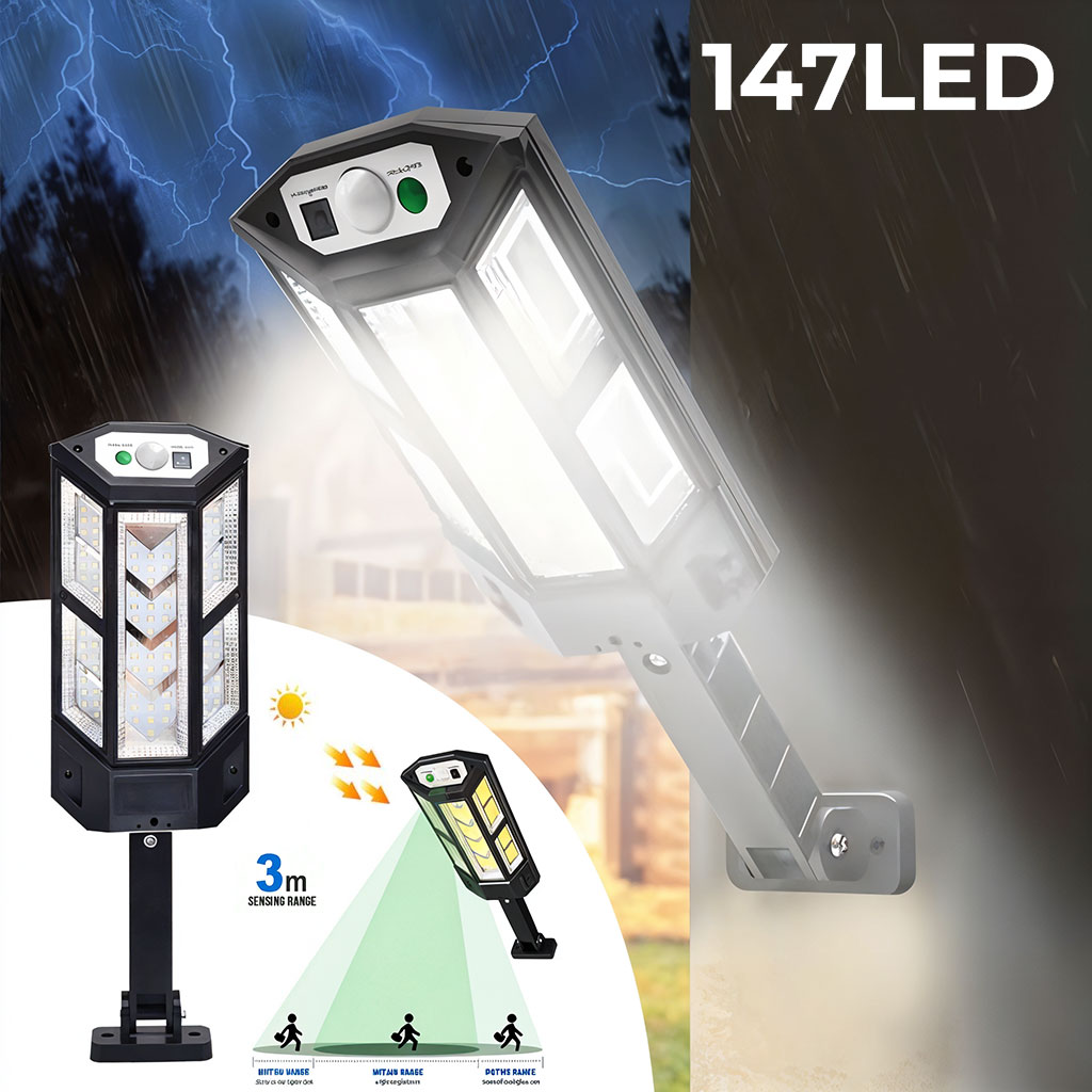 Applique murale solaire à 147 LED avec capteur de mouvement PIR ètanche