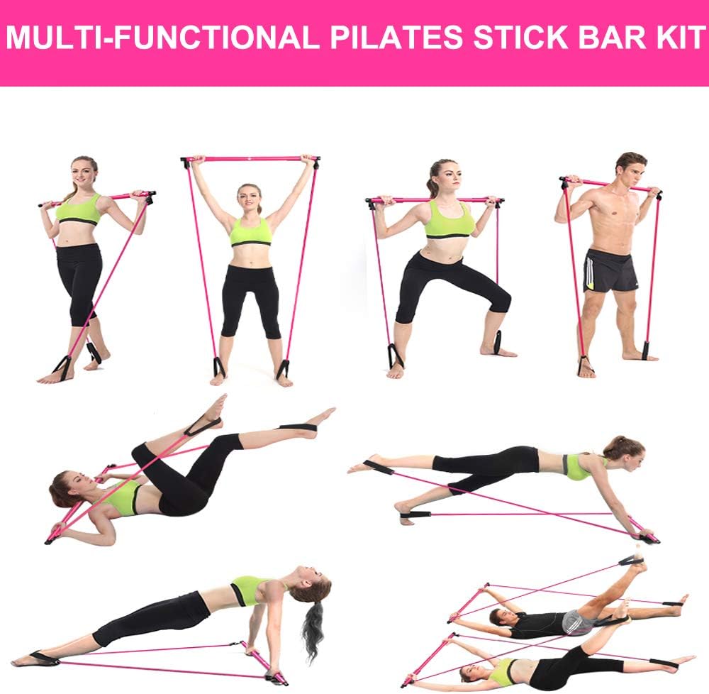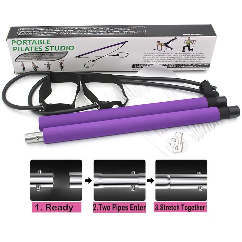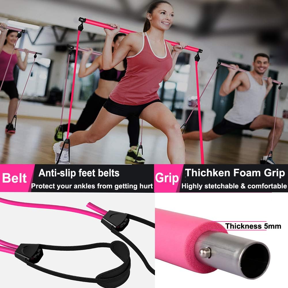 Barre de pilates portable avec bande de résistance réglable
