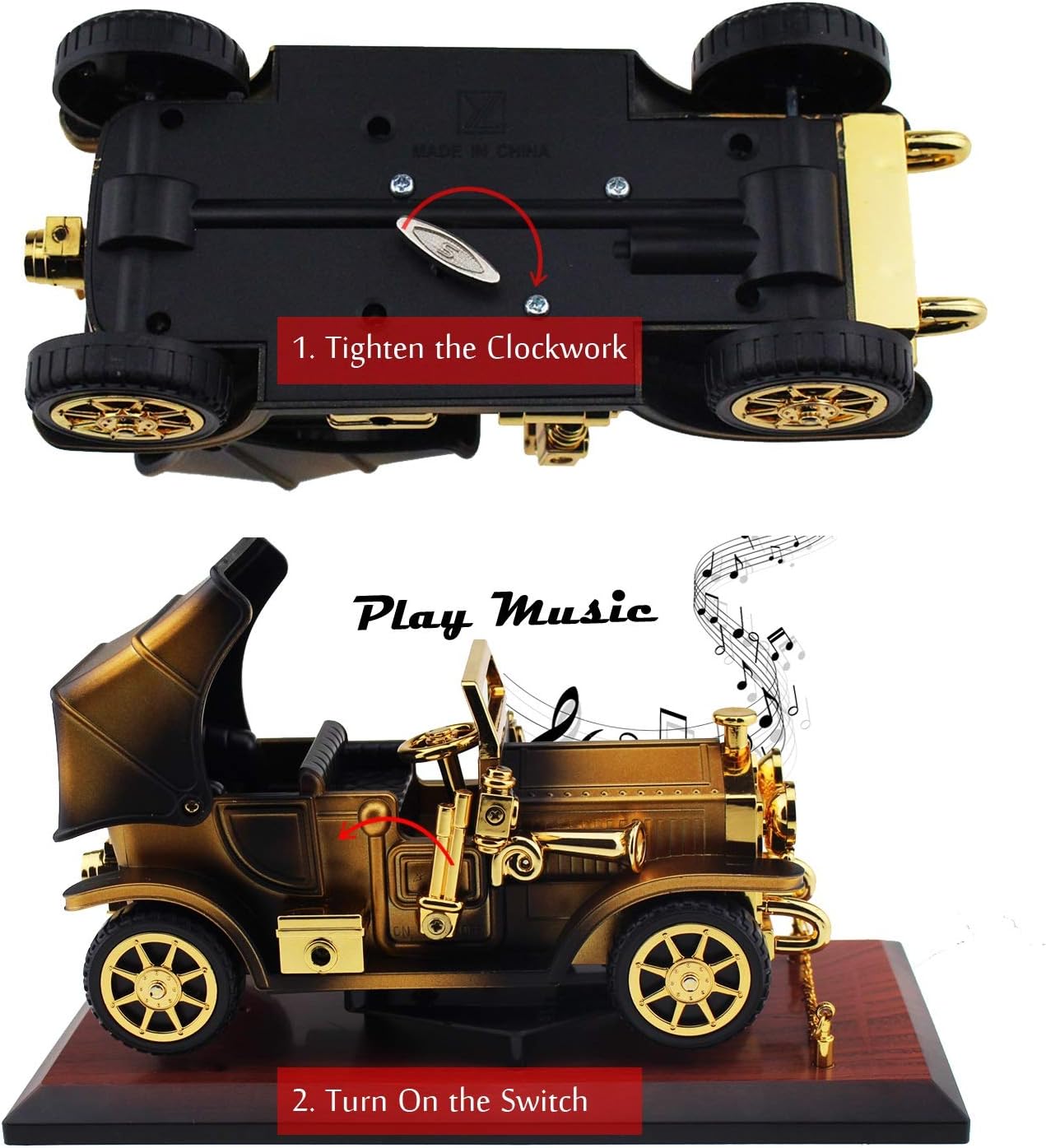 【Décoration de la maison】 Cette boîte à musique utilise un design de voiture rétro vintage qui montre un sentiment d'âge et d'histoire. Il est idéal pour la décoration de la maison, de la chambre d'enfant, du mur et du bureau ou même pour les collections. • 【Jouer de la musique】 Aucune batterie nécessaire. Il suffit de serrer le mécanisme d'horlogerie et d'allumer l'interrupteur, et la voiture jouera une douce mélodie pendant que les roues roulent. Excellent choix de cadeau : fabrication soignée avec emballage cadeau haut de gamme. C'est un excellent choix pour un cadeau pour la famille, les enfants, les amis, etc. Matériau : plastique ABS respectueux de l'environnement ; Modèle : voiture rétro vintage. • 【Taille de l'article】 24,5 x 12 x 15 cm / 8,1 x 4,7 x 5,9 pouces (base incluse)