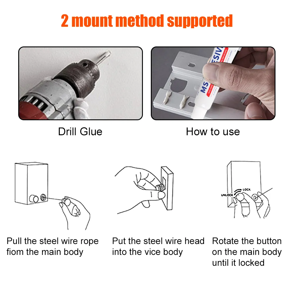 تركيب مرن: يمكنك تثبيته إما باستخدام الغراء القوي (بدون ثقب الجدران) أو بواسطة البراغي لضمان ثبات أقصى.