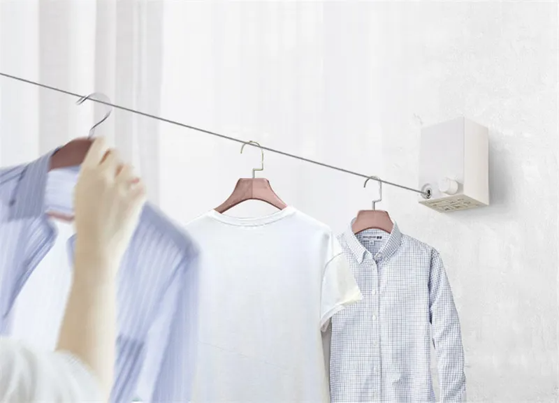 نظام القفل الذكي: مزود بمفتاح دوار؛ عند سحب الحبل للطول المطلوب، يمكنك إحكام القفل لمنع ارتخاء الحبل أو تراجعه تلقائياً أثناء تعليق الملابس الثقيلة.
