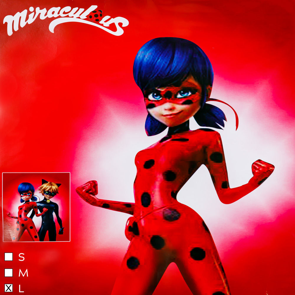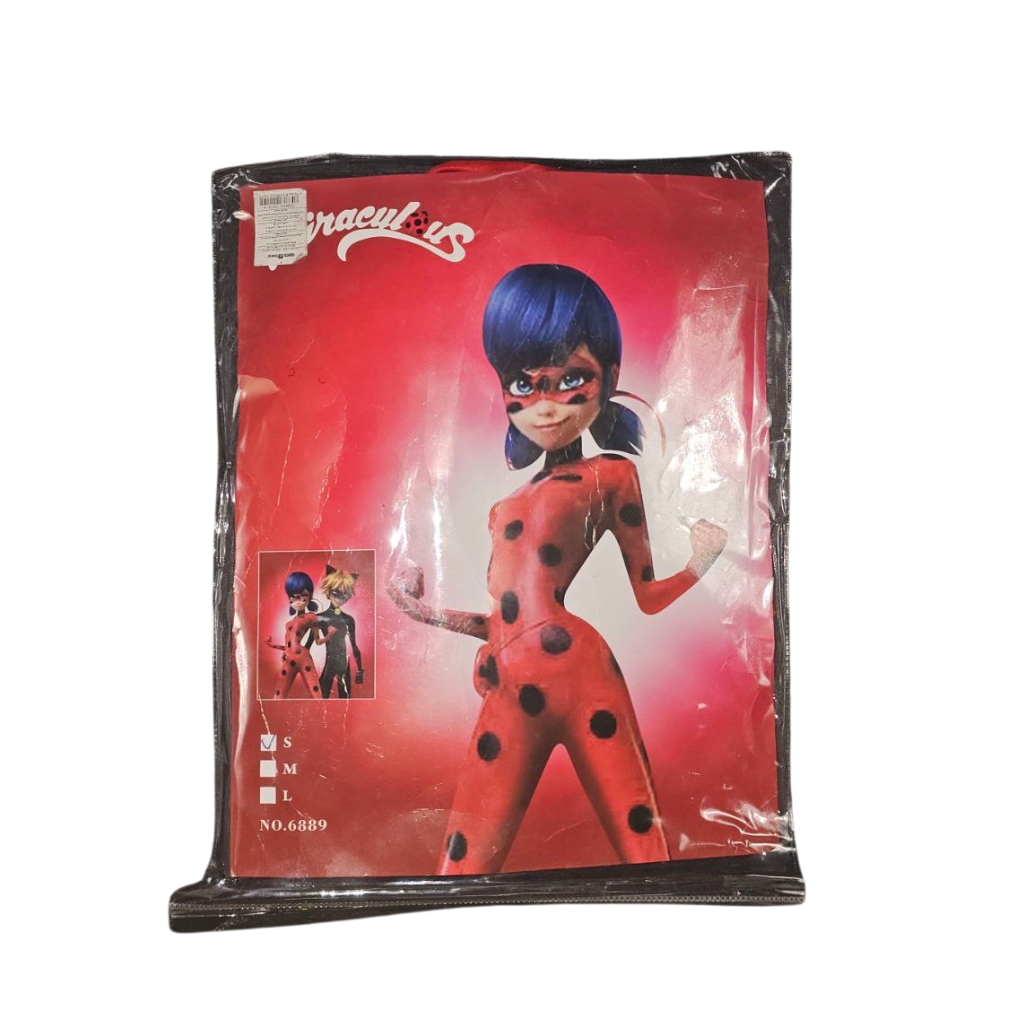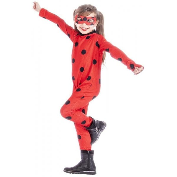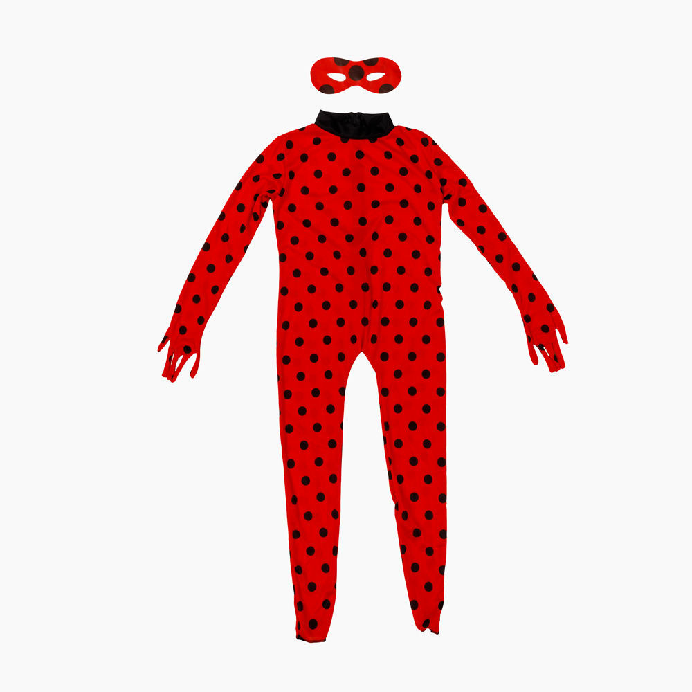 Le déguisement de Ladybug, un incontournable ! Il se compose d'une combinaison et d'un masque (perruque et chaussures non incluses). La combinaison élastique est rouge avec des pois noirs. Elle se ferme dans le dos. Le masque est un loup en tissu assorti à la combinaison, soit rouge à pois noirs. Il se porte à l'aide d'un élastique et possède des ouvertures pour les yeux. Ce déguisement de Ladybug Miraculous sera parfait pour le Carnaval ou une fête d'anniversaire !