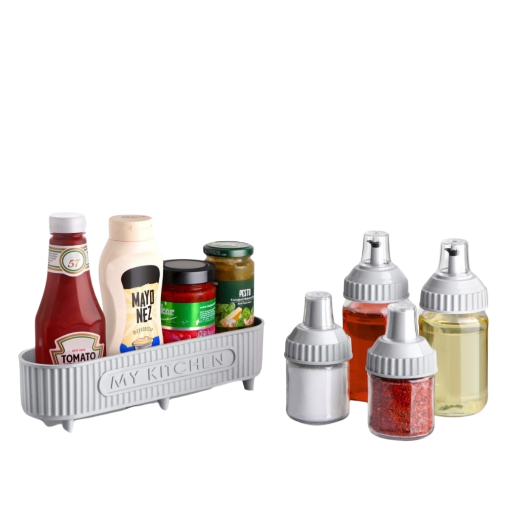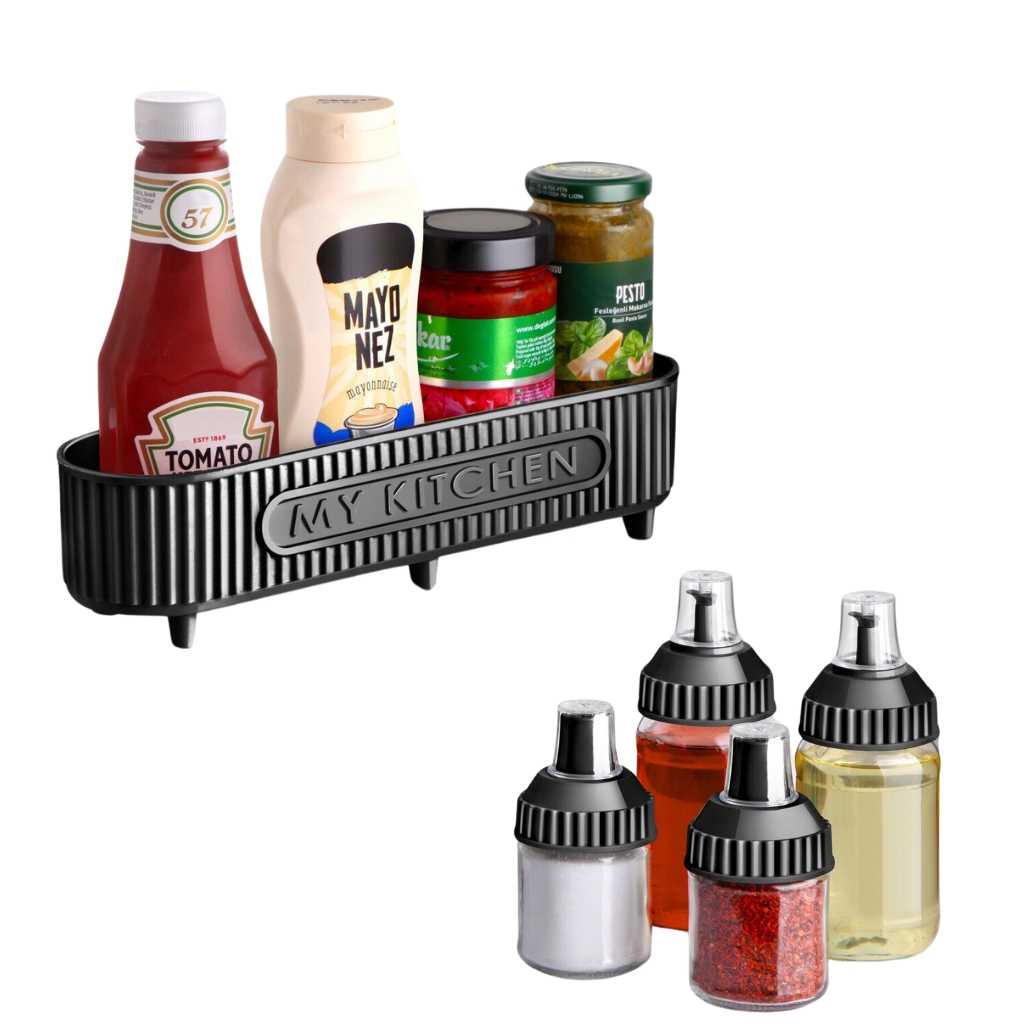 bouteilles d'huiles • 2 bouteilles d'épices • 1 support-bouteille