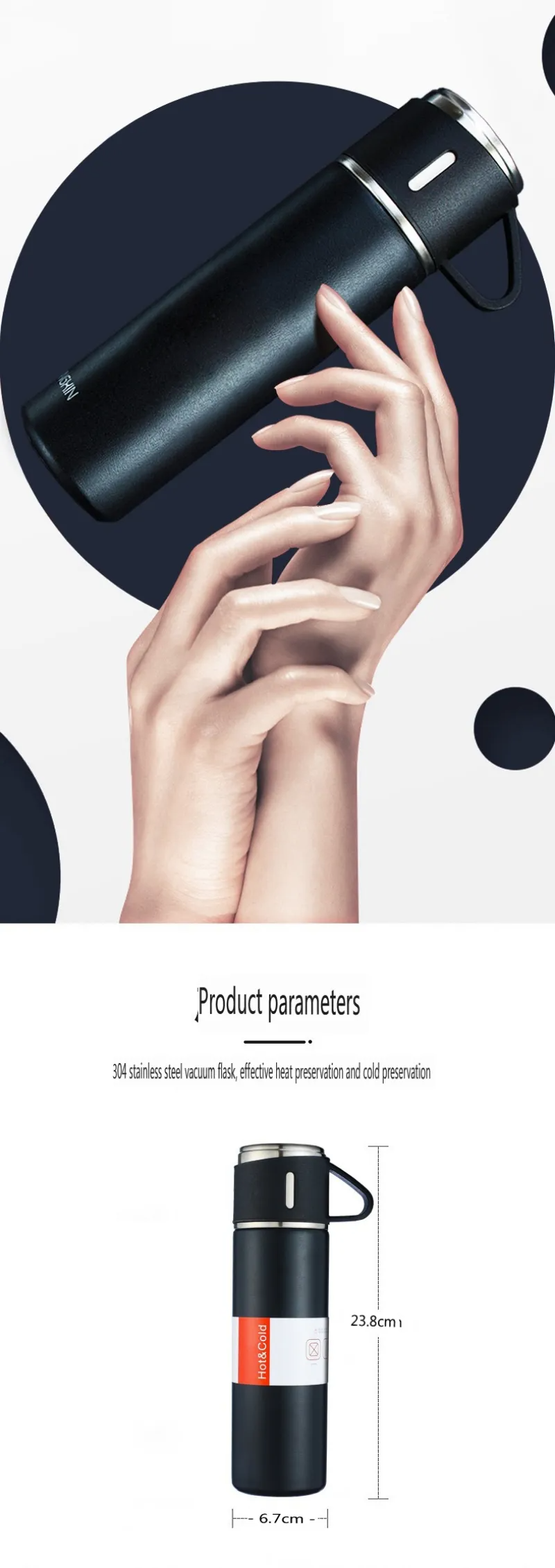 Ensemble Thermos avec 3 tasses thermique 500ml en acier inoxydable