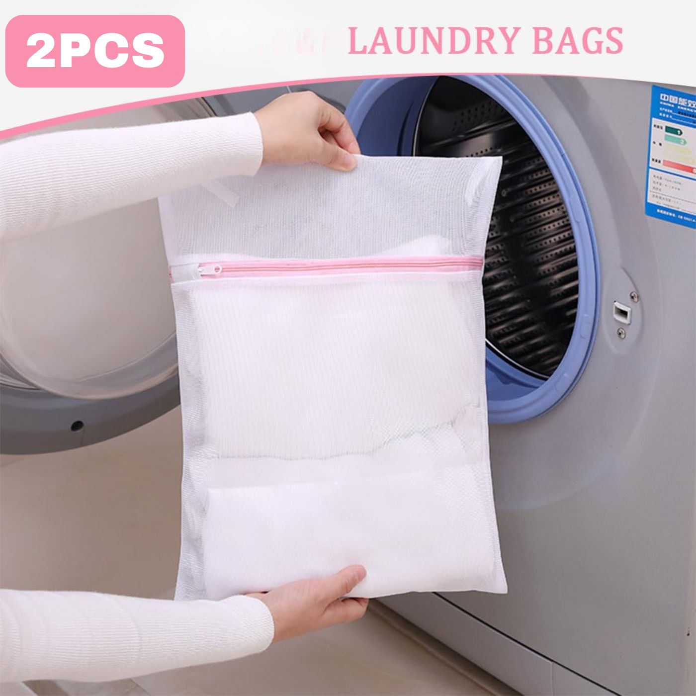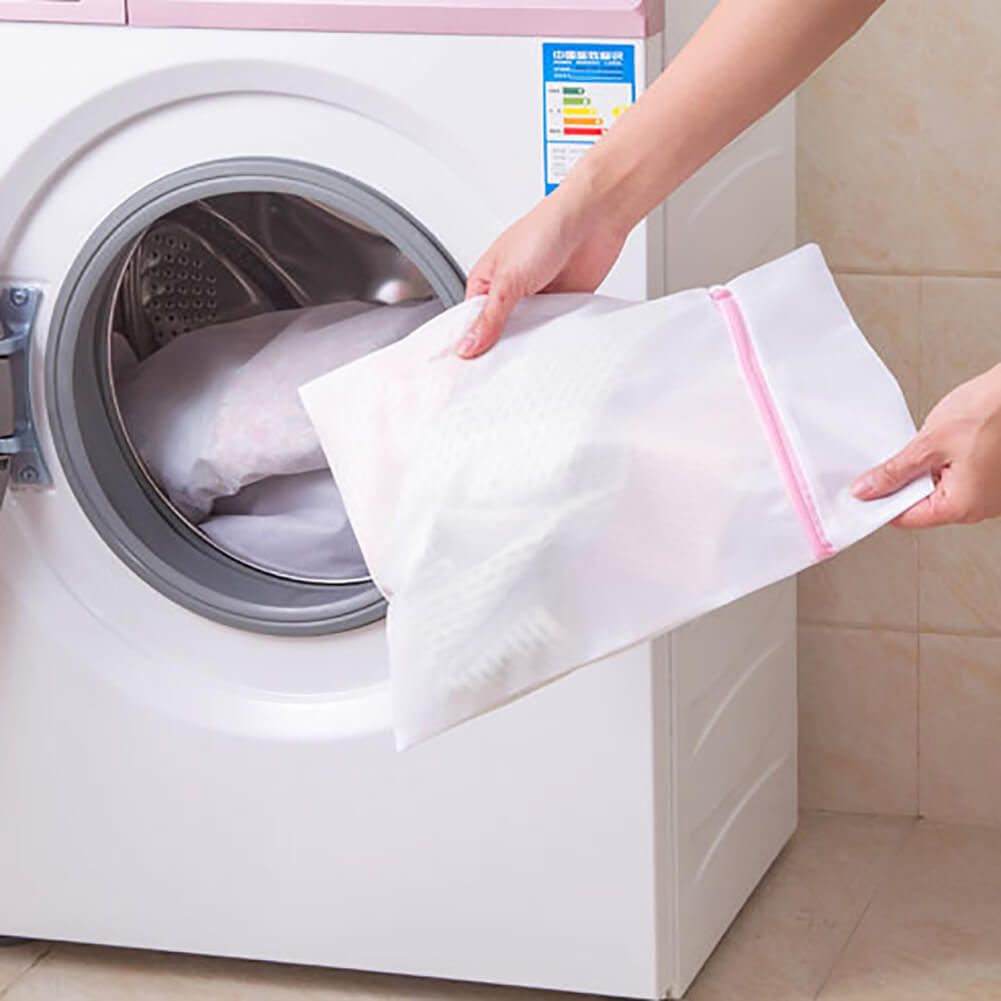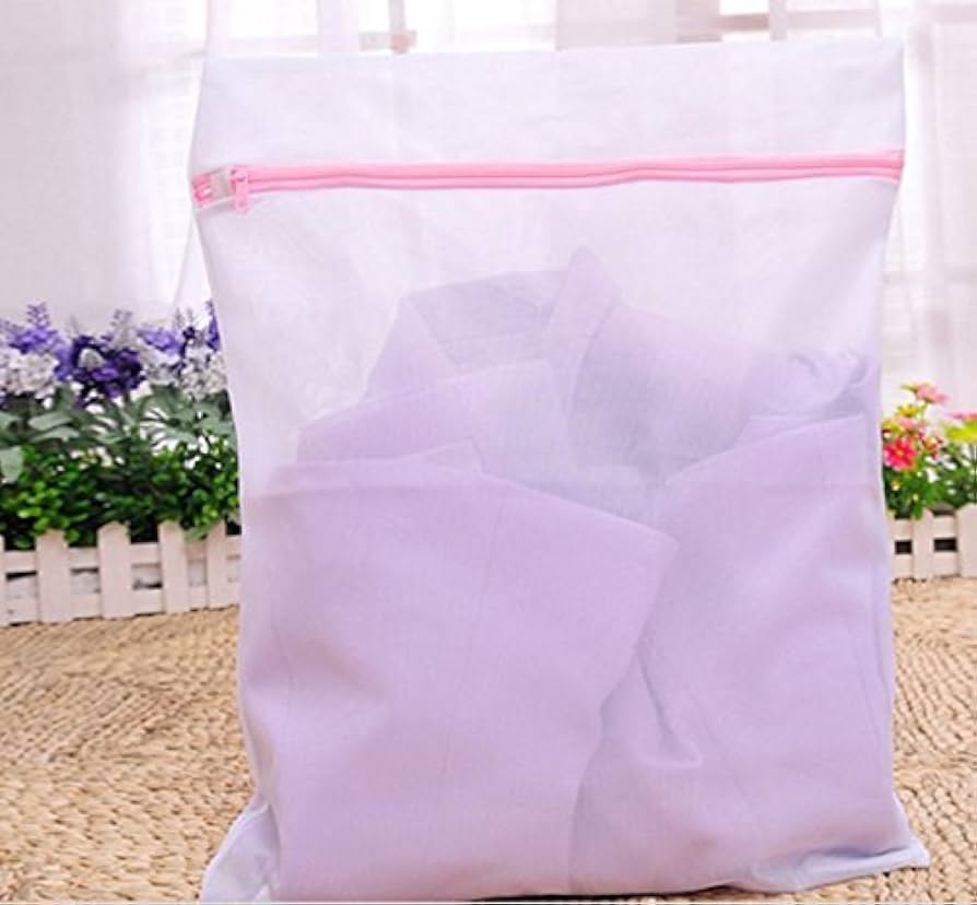 Remplissez simplement le sac à linge en maille avec des bas, des soutiens-gorge, des camisoles, des chemises de nuit et des sous-vêtements. Ensuite, mettez-le dans la machine à laver pour un nettoyage facile ! • Fini les vêtements entrelacés ou attachés ensemble dans la machine à laver ou dans tout type de bols à laver. • Facile à utiliser. Dimensions : 50 cm x 60 cm • offrant une protection maximale à vos vêtements ! • Le forfait comprend: 2 sac de lavage