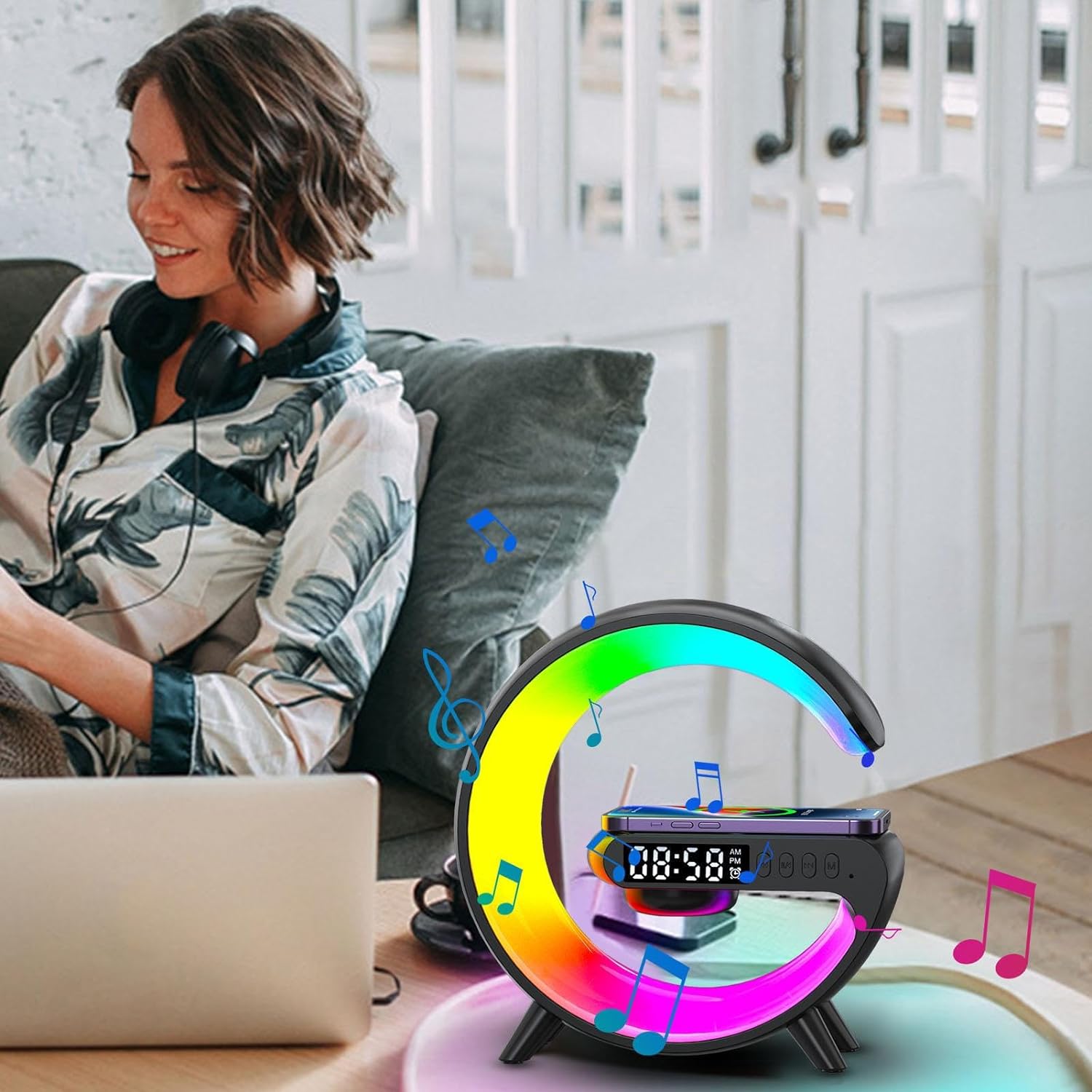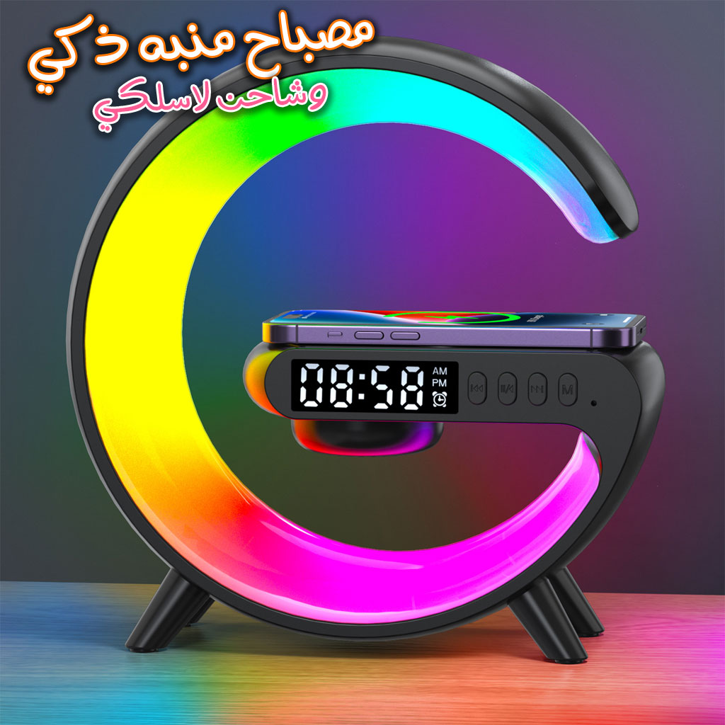 Réveil intelligente type G Bluetooth chargement sans fil haut-parleur RGB lumineuses - Noir