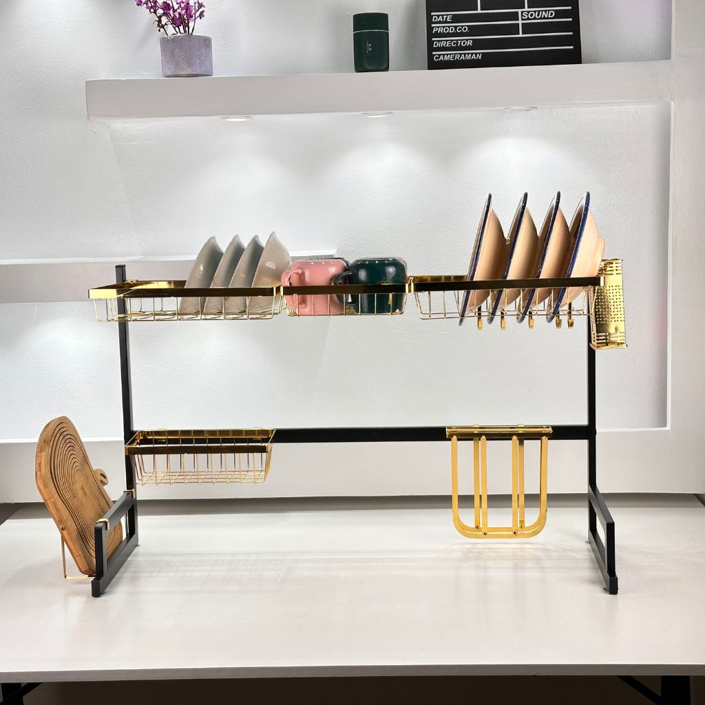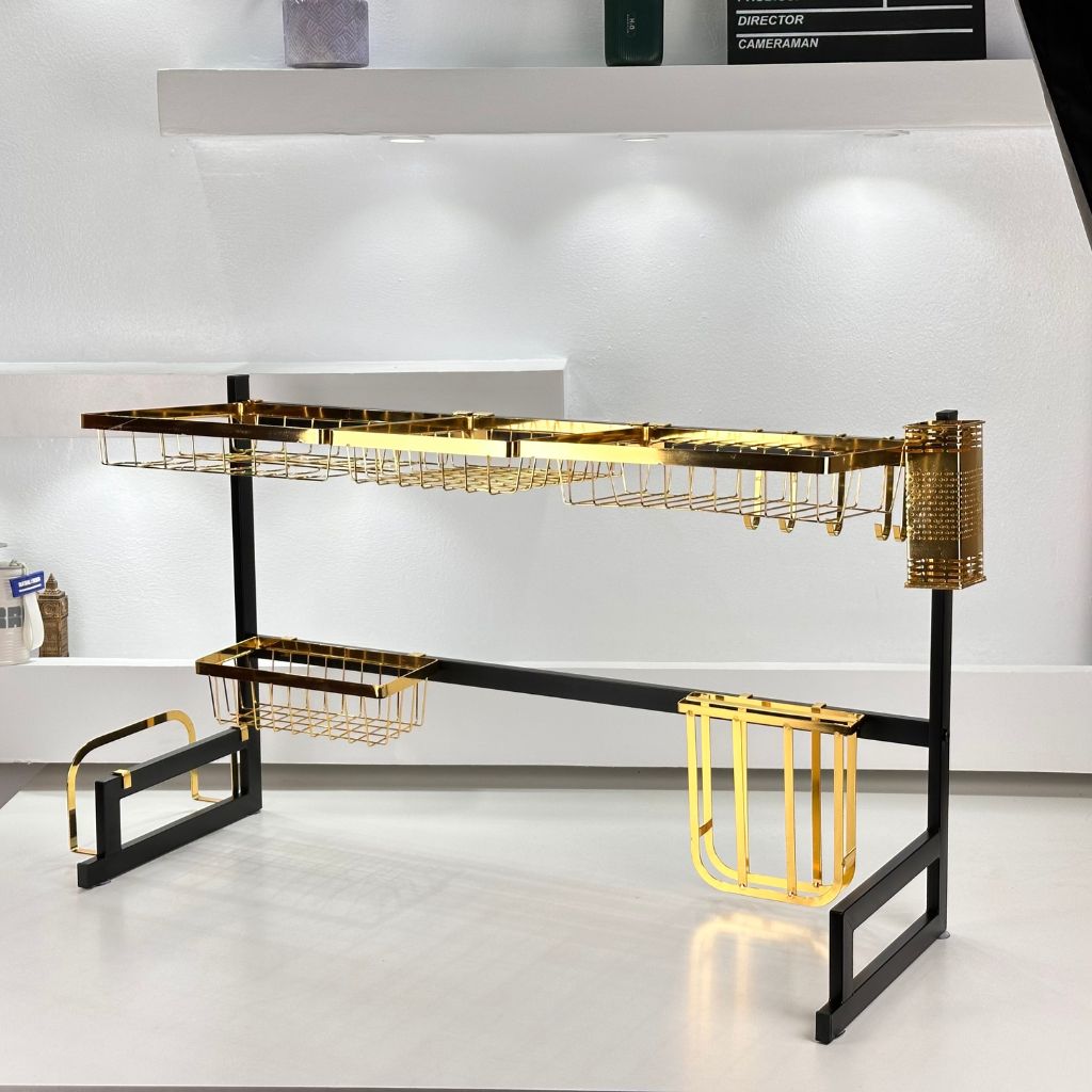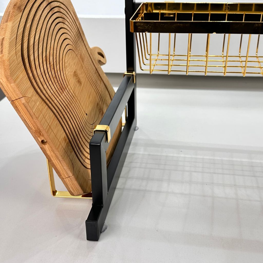 Égouttoir à vaisselle sur l’évier, avec crochets et support pour planche à découper gold
