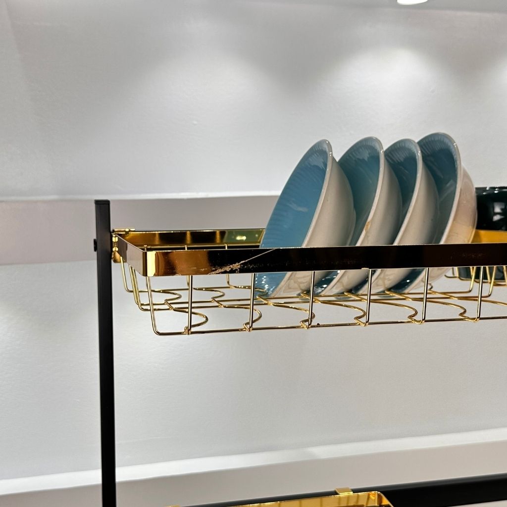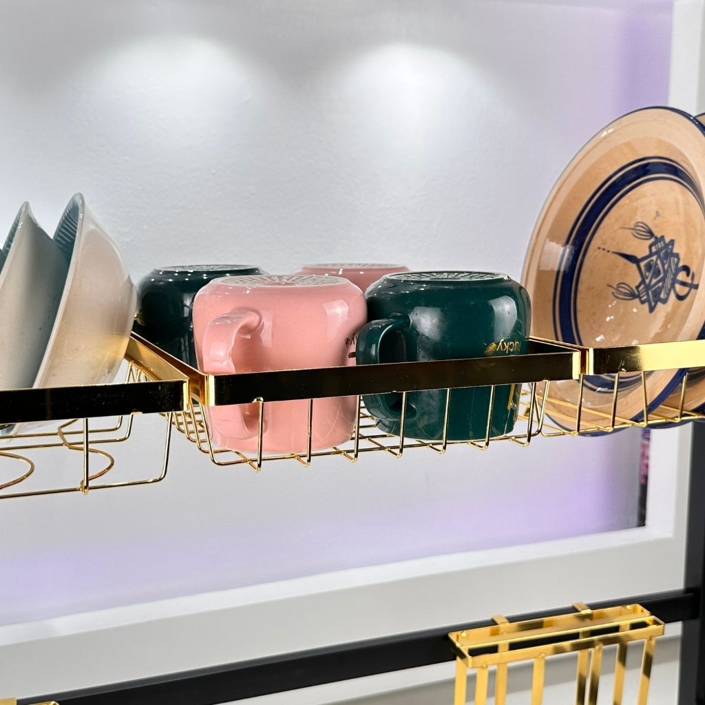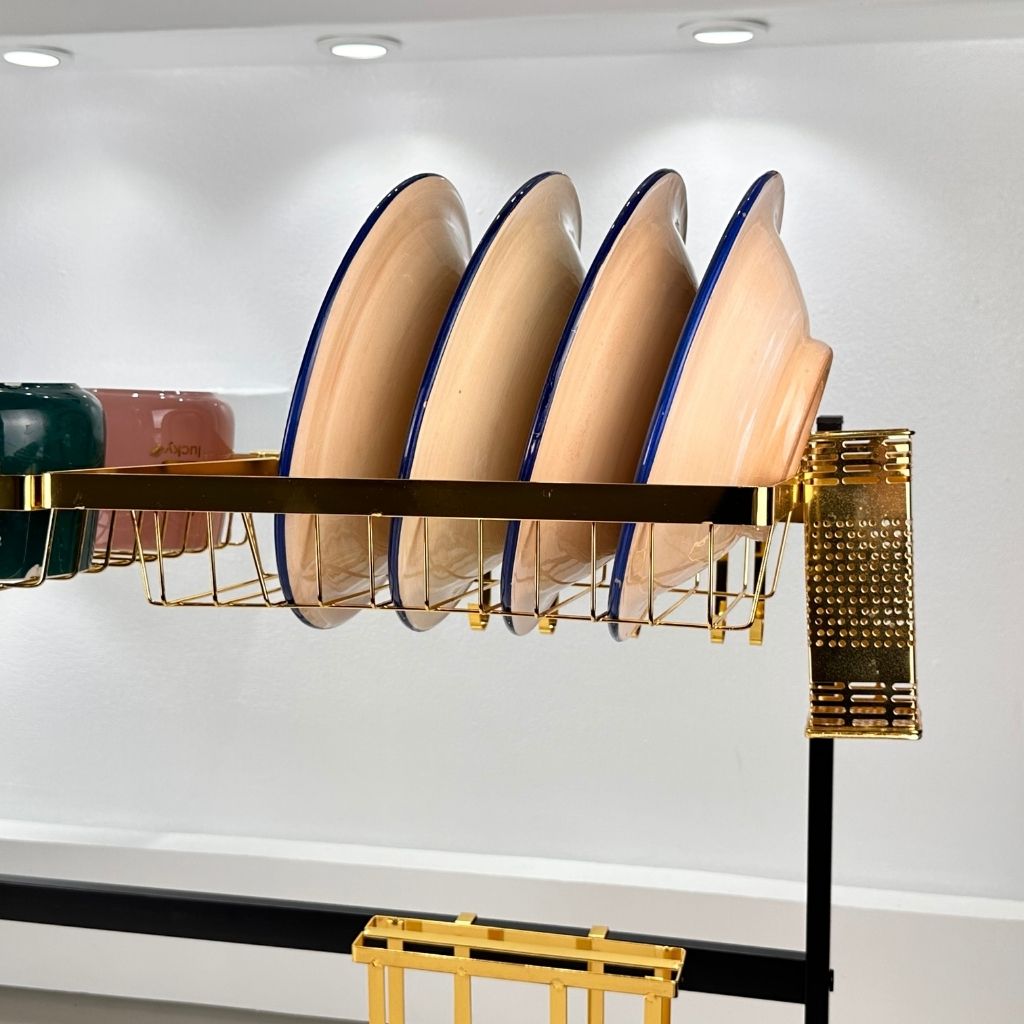 Égouttoir à vaisselle sur l’évier, avec crochets et support pour planche à découper gold