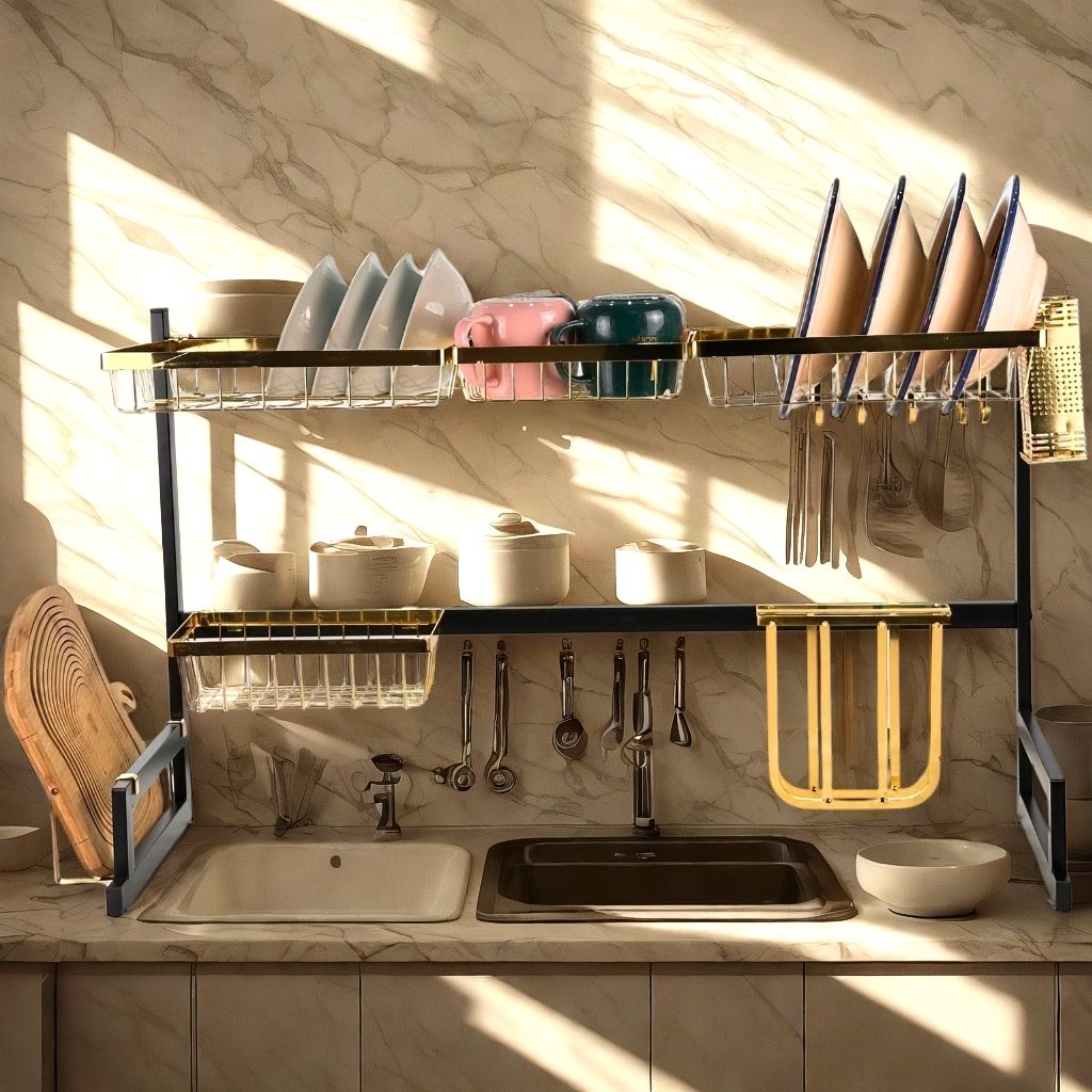 توفير المساحة – Économiseur d’Espace: تصميم عملي يستغل المساحة الفارغة فوق حوض المطبخ، مما يساعد على تنظيم أفضل وتقليل الفوضى.