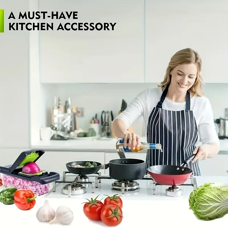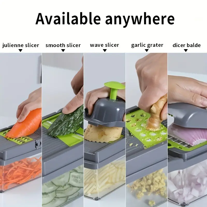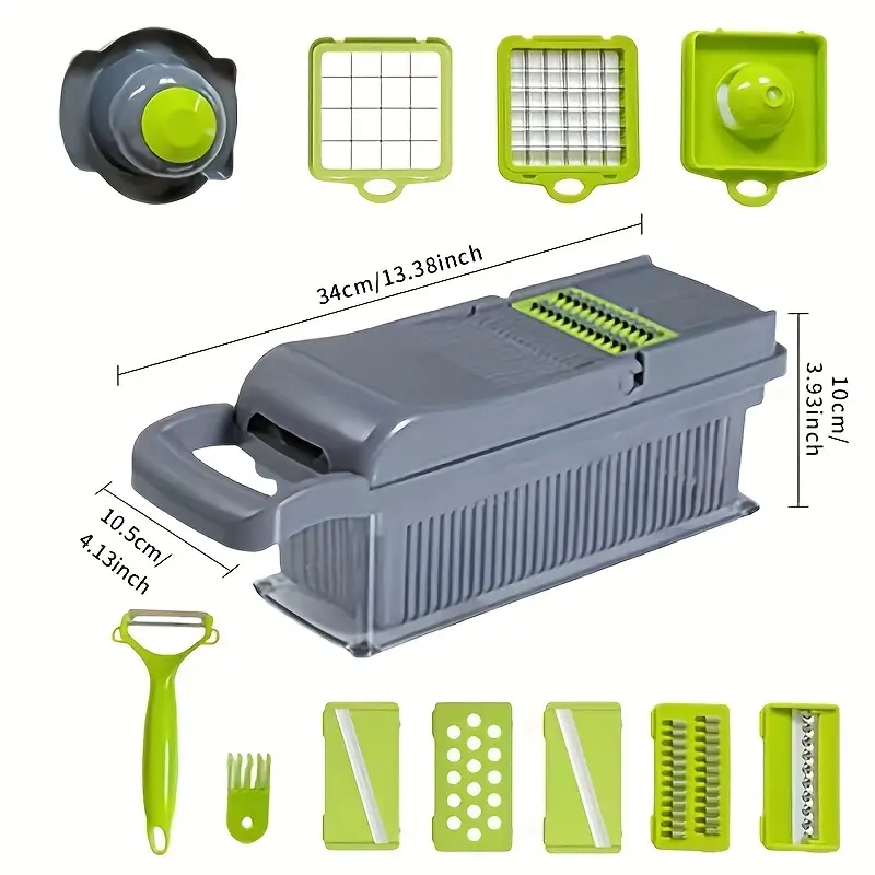 Hachoir à légumes multifonctionnel 14in1 , trancheur, mandoline, hachoir à oignons pour oignon, pomme de terre, tomate, concombre, carotte
