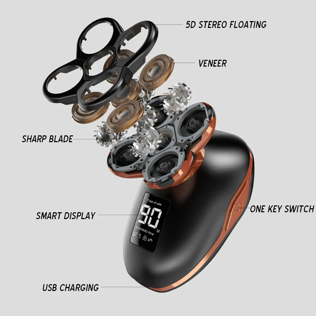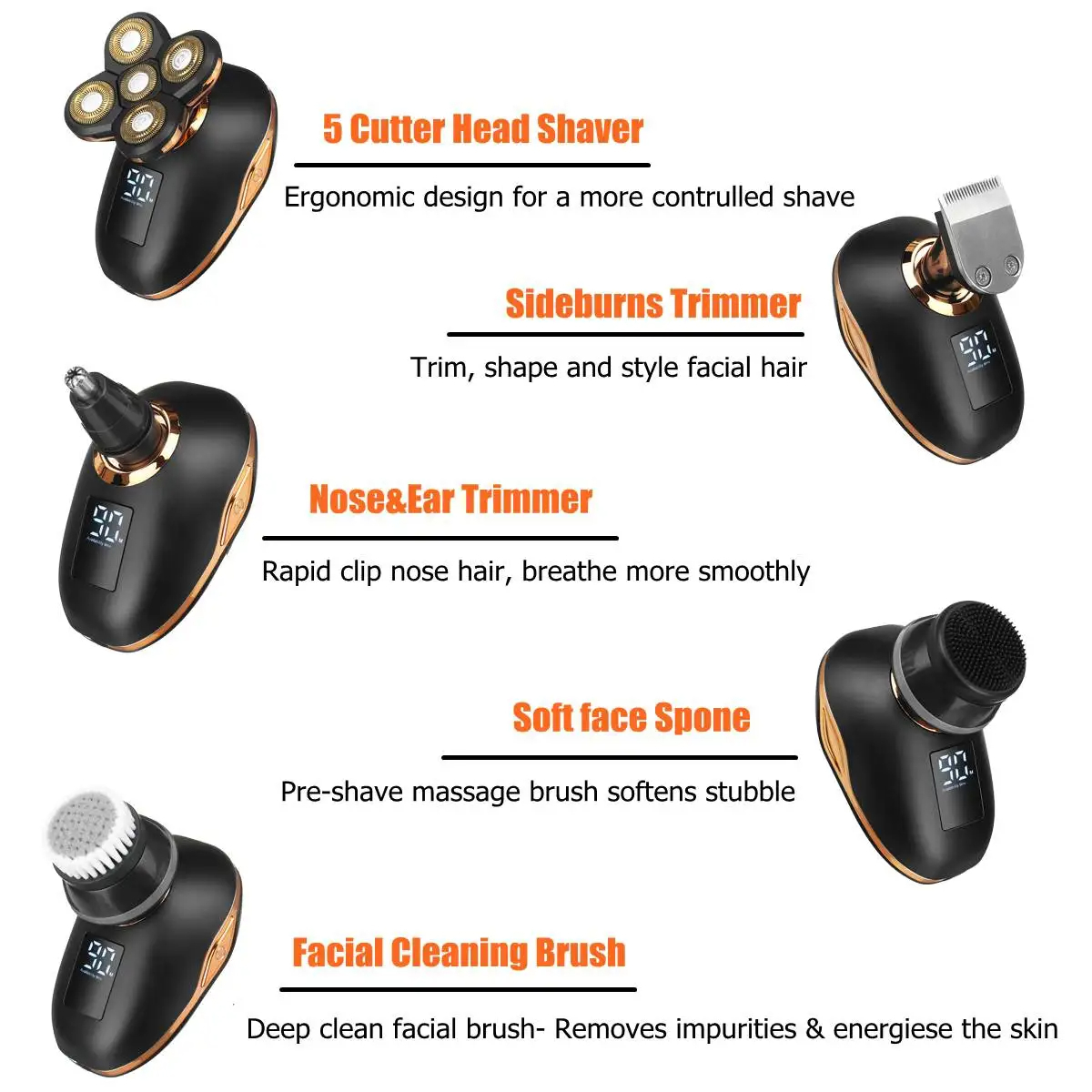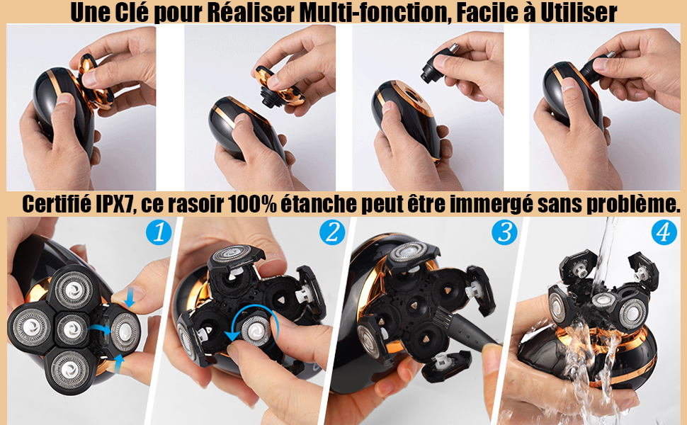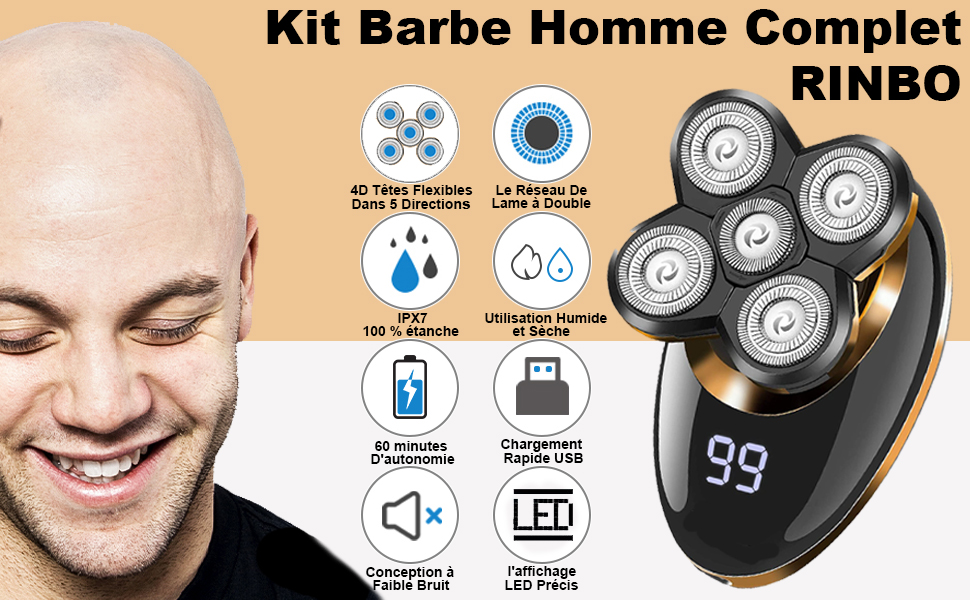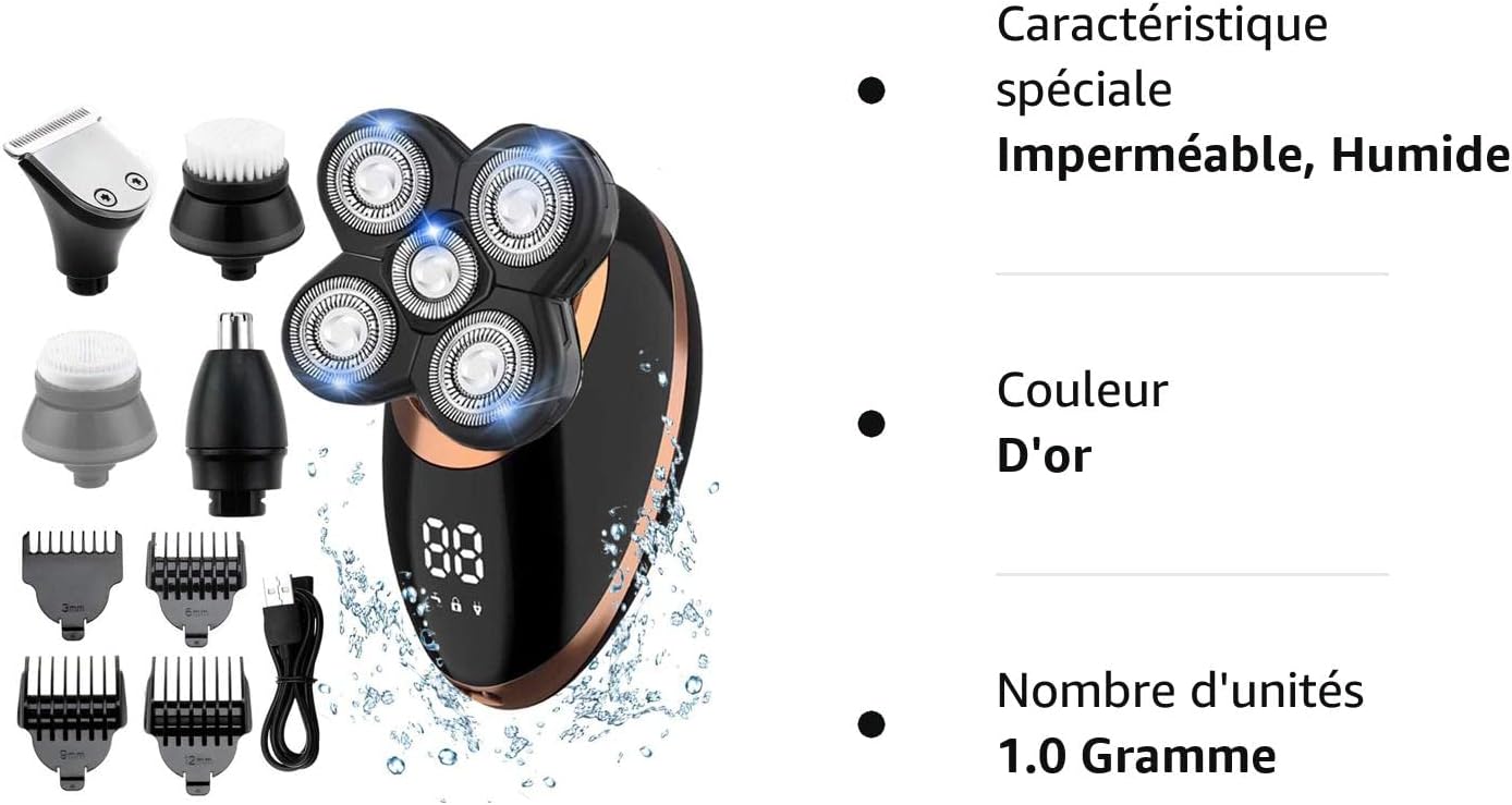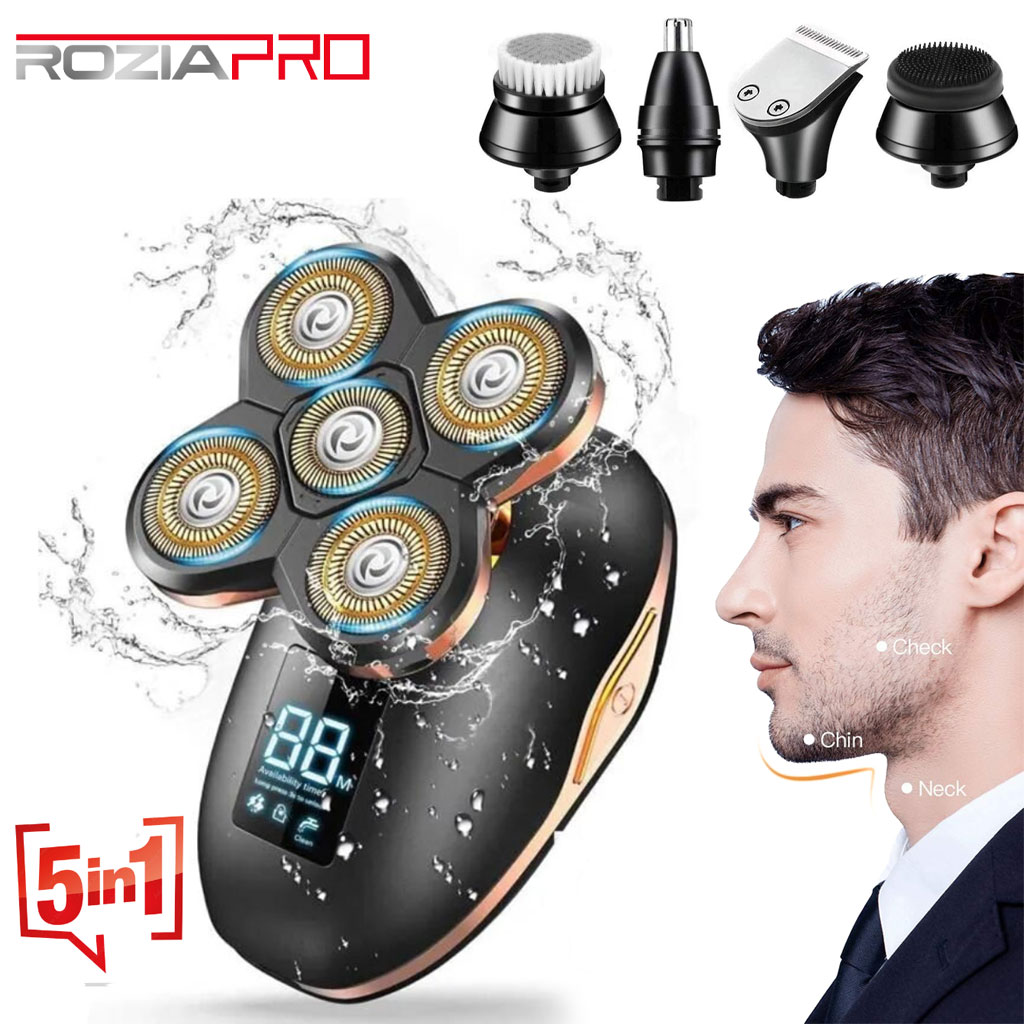 Rozia Rasoir électrique sans fil 5en1 pour hommes étanche, rechargeable par USB