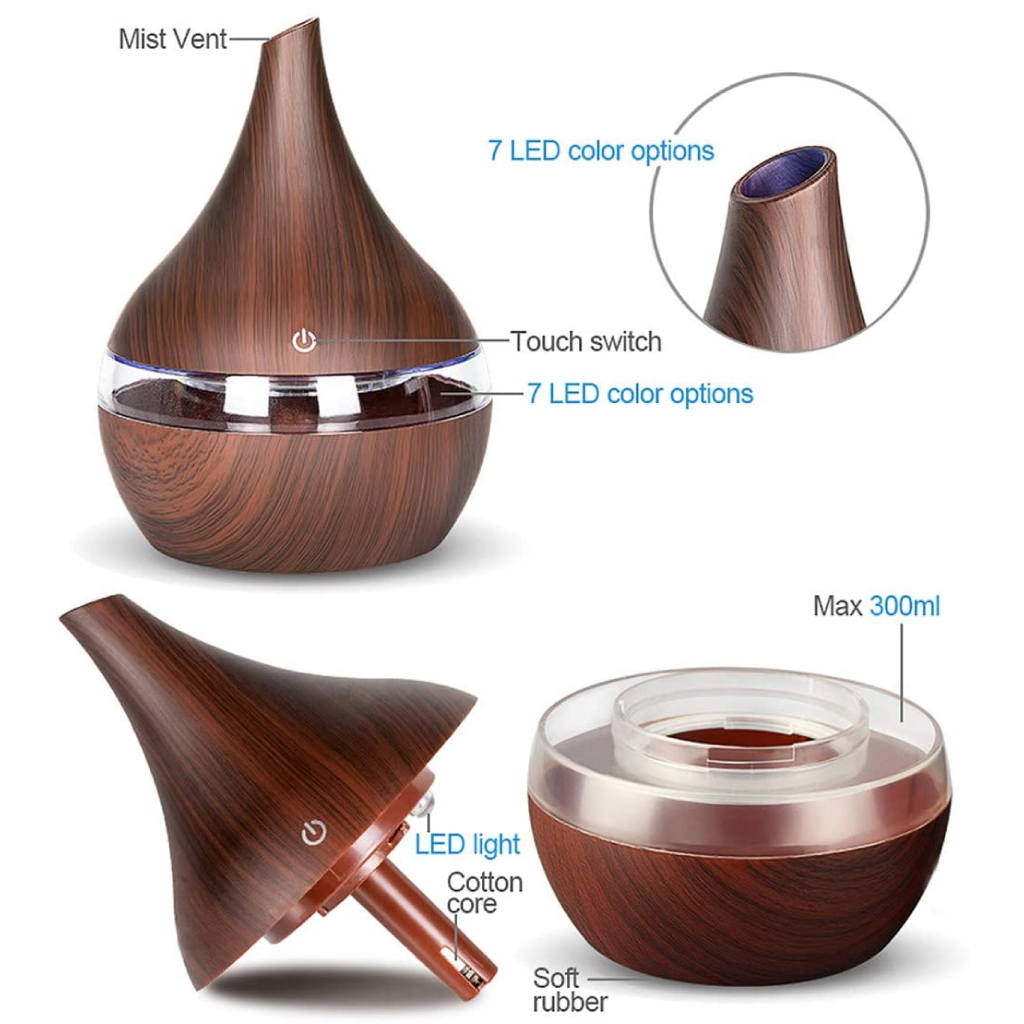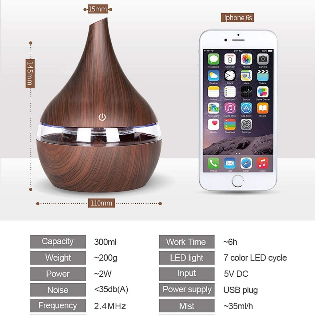 Humidificateur Électrique style bois 300ml Aromathérapie Diffuseur Avec 7 Couleur LED Lumière