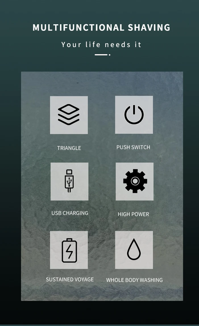 Caractéristiques: • Tête de coupe remplaçable • Haute puissance • Chargement USB • Imperméable • Voyant d'alimentation • Filet coupe-anneau à double anneau de diamètre plus large Caractéristiques : • Vitesse : 8000 tr/min • Temps de charge : 1h • Temps d'utilisation lorsqu'il est complètement chargé : 60 min • Puissance : 5W • Taille: 6*15.5 cm • Batterie au lithium Accessoires: • Hôte • Couvercle de protection • Coupeur de cheveux • Coupe-poils de nez • Bouteille d'huile • Brosse de nettoyage • chargeur USB