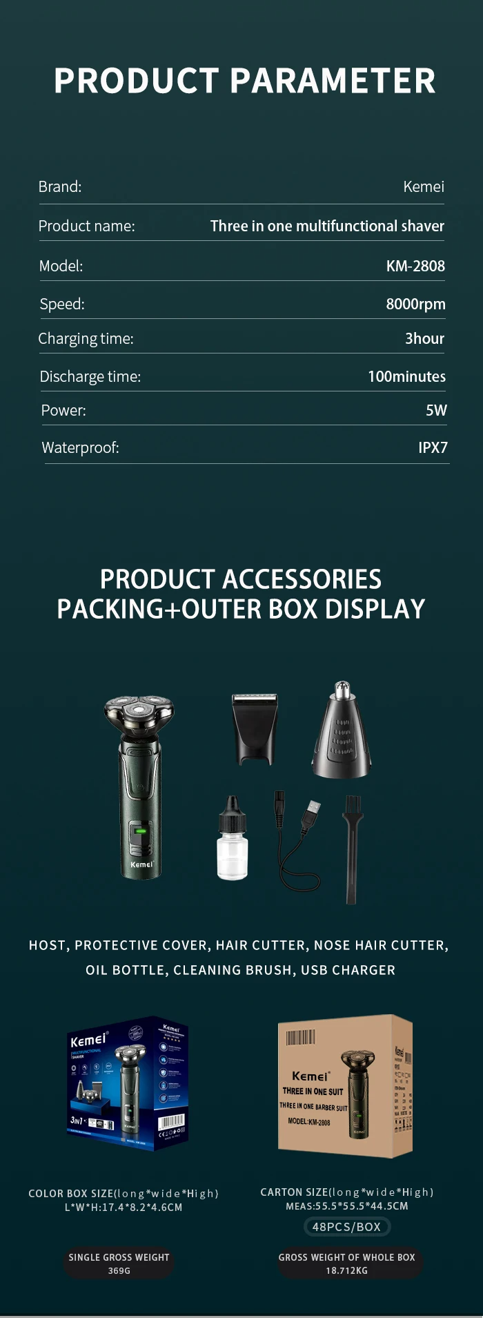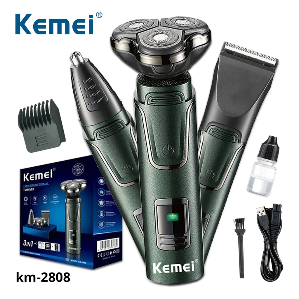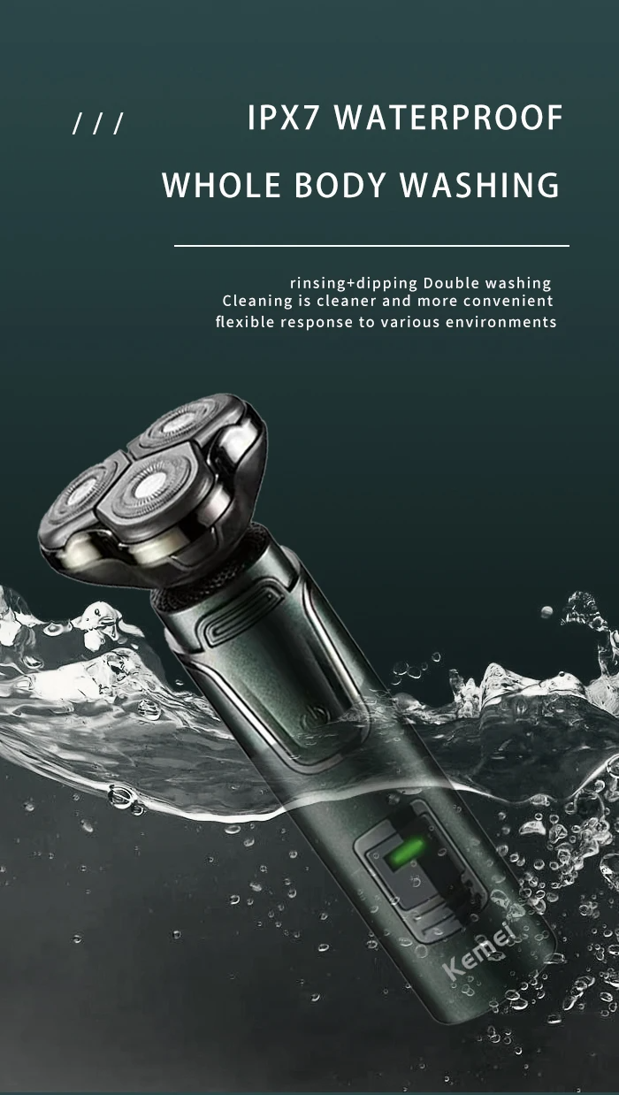 Kemei Rasoir Corps Complet Ipx7 Étanche Multifonctionnel Trois Tête Lames Flottant Poignées Amovible km-2808