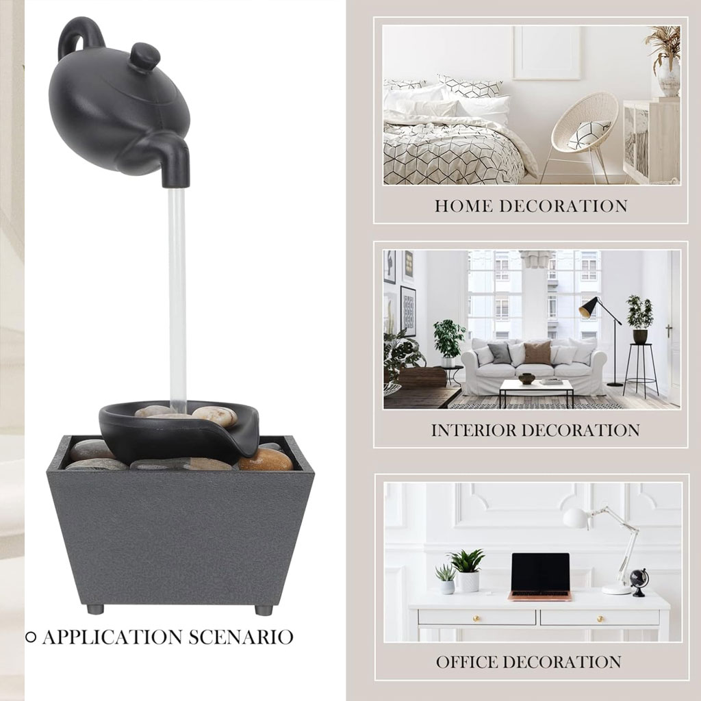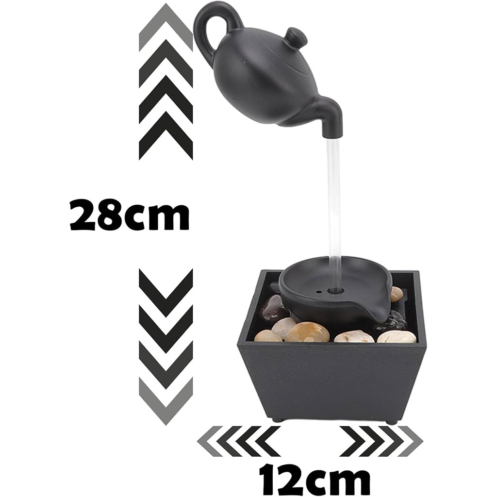 Fontaine à thé au design charmant : ornée d’un motif fantaisiste de théière flottante, cette fontaine ajoute une touche d’élégance et de fantaisie à votre décoration. • Un doux écoulement d'eau : La cascade d'eau crée une ambiance apaisante et relaxante, idéale pour soulager le stress et renforcer la tranquillité de votre espace de vie. • Dimensions pour table : Parfaitement dimensionné pour toute table ou bureau, il s'intègre sans effort dans divers espaces, y compris les salons, les bureaux ou les chambres. • Matériaux de haute qualité : Fabriqué à partir de matériaux durables pour garantir une utilisation prolongée, avec un design qui allie beauté et fonctionnalité. • Maintenance facile : Installation et entretien simples, avec une pompe nécessitant peu d'entretien qui assure un débit d'eau régulier. • Ambiance paisible : Idéal pour créer un environnement paisible, parfait pour la méditation, la relaxation ou pour ajouter une touche d'élégance à la décoration de votre maison ou de votre bureau. • Dimensions dans les photos