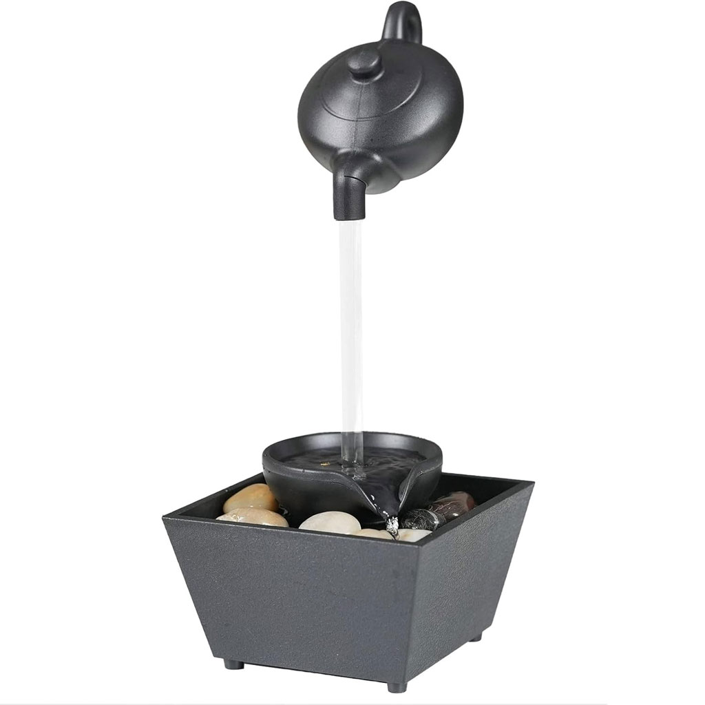 Fontaine théière flottante décoration de table avec lumières LED et pierres - نافورة مياه على شكل إبريق شاي عائم