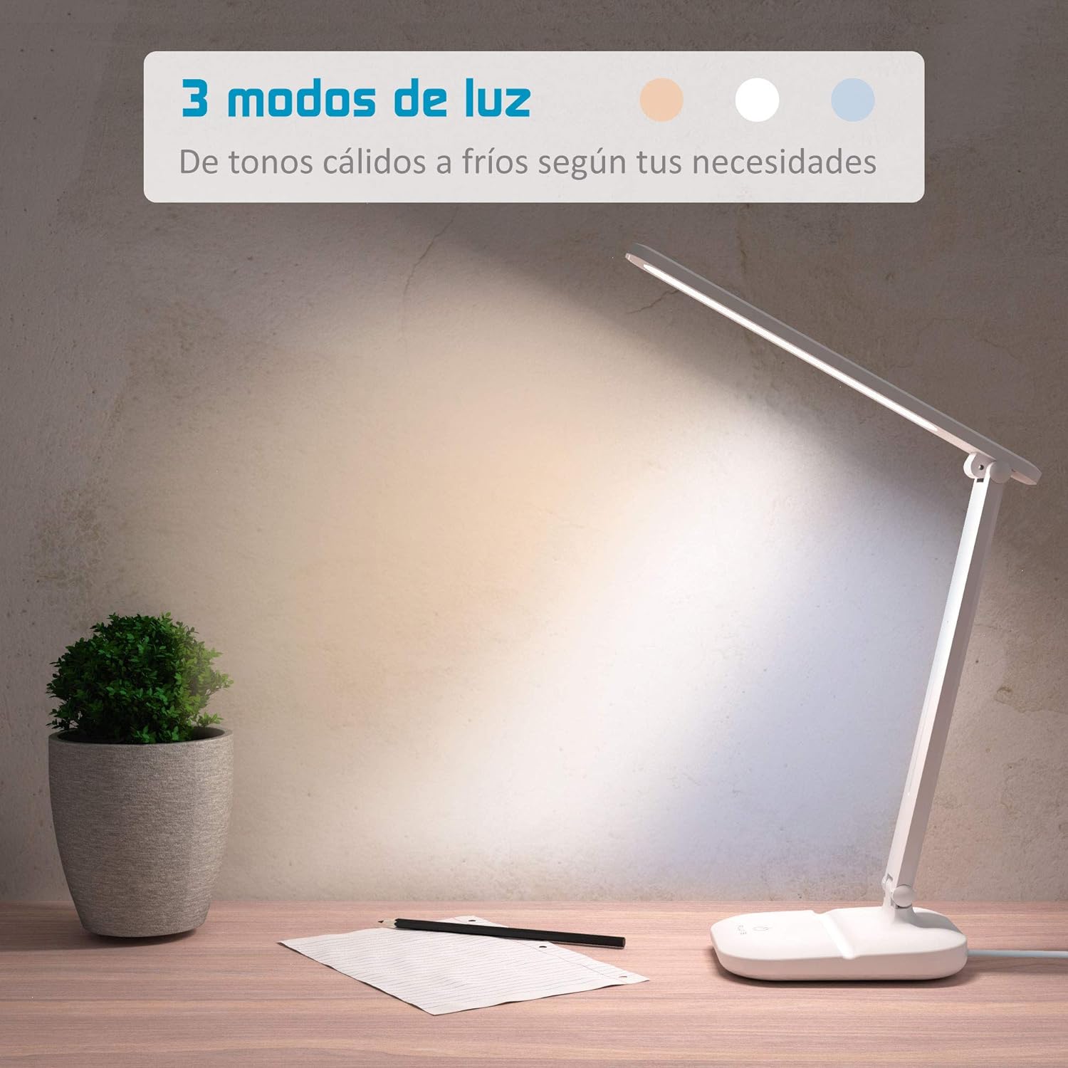 Lampe de bureau LED à intensité réglable 3 Modes d'éclairage commande tactile chargement USB