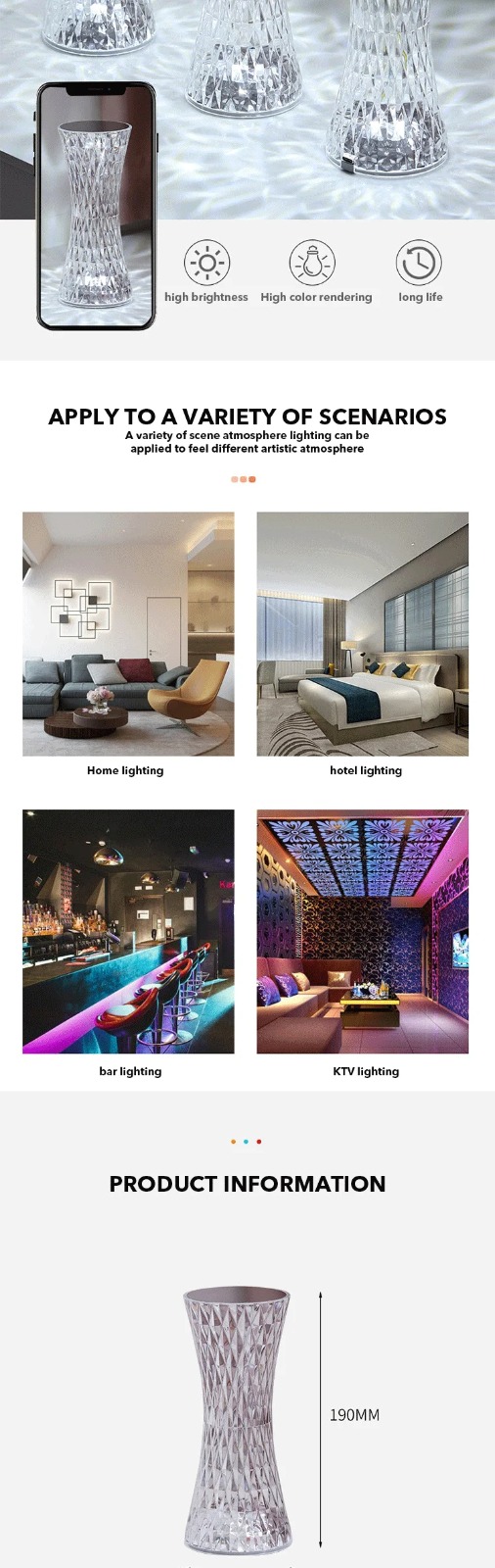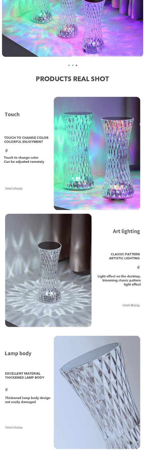 •426 تقييم•تم بيع +604lampe de table en cristal sans fil Tactile Rgb pour chambre