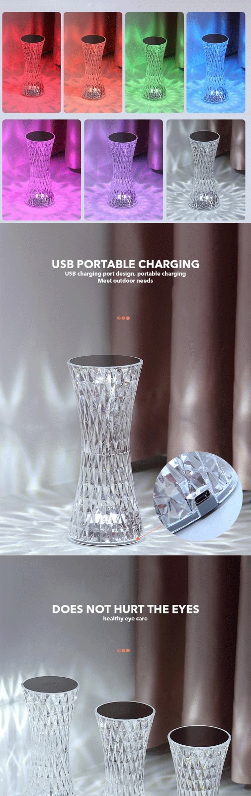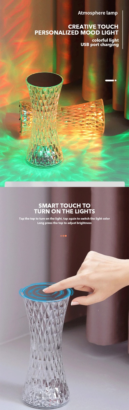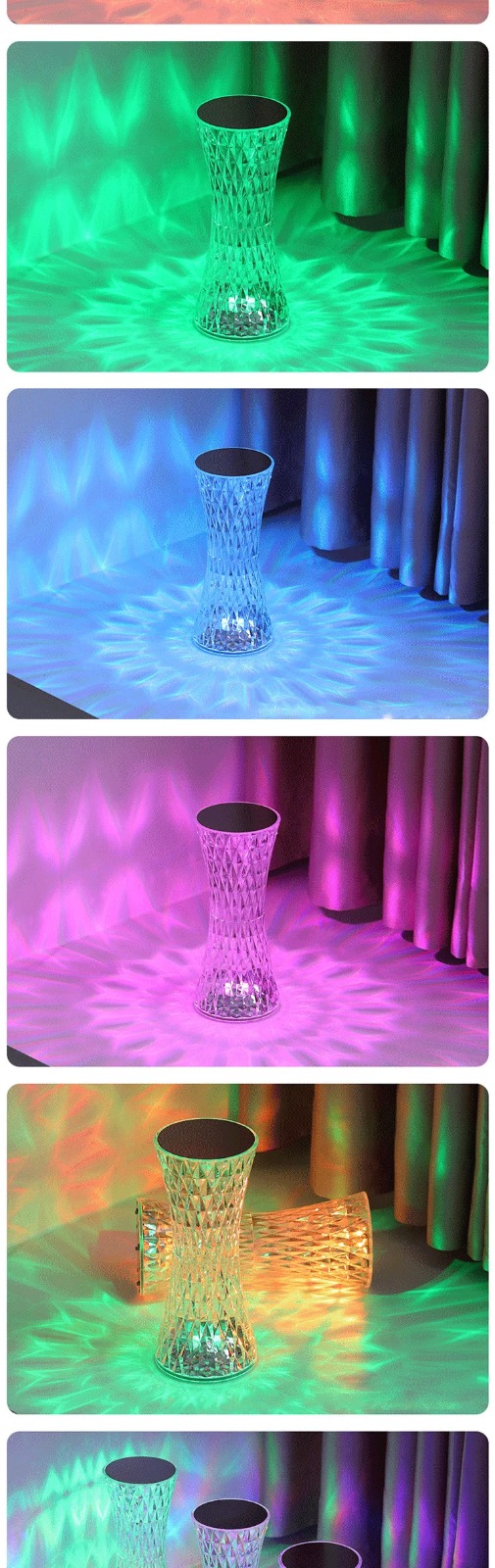 lampe de table en cristal sans fil Tactile Rgb pour chambre
