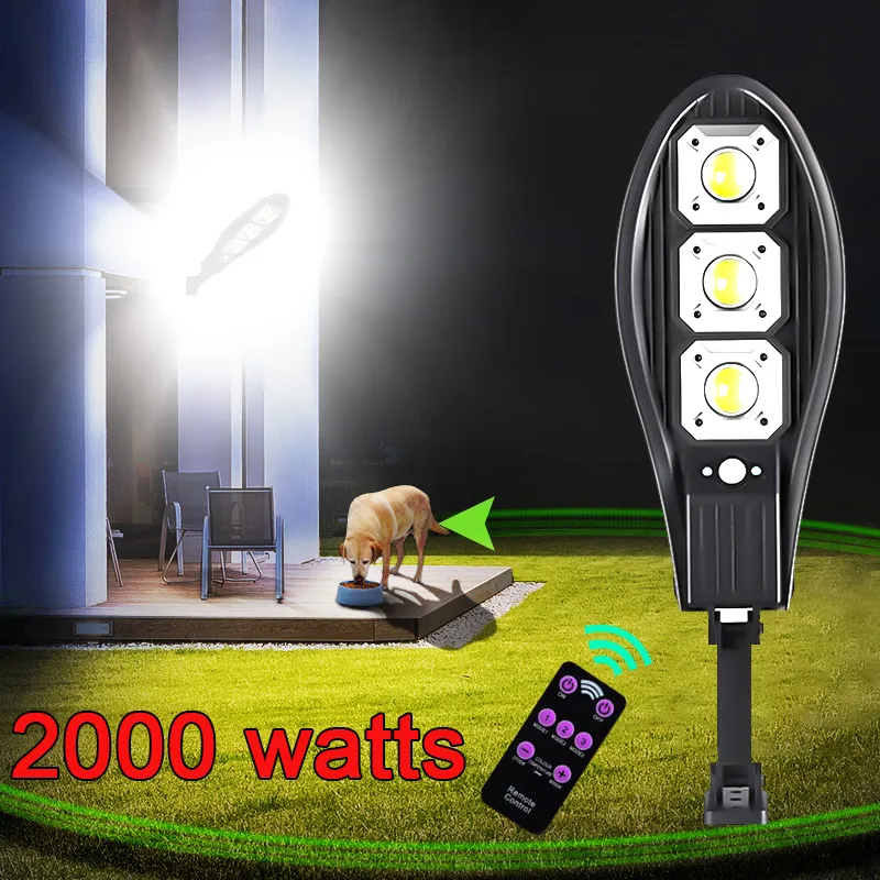 Lampe solaire LED 2000 Watts avec détecteur de mouvement PIR imperméable