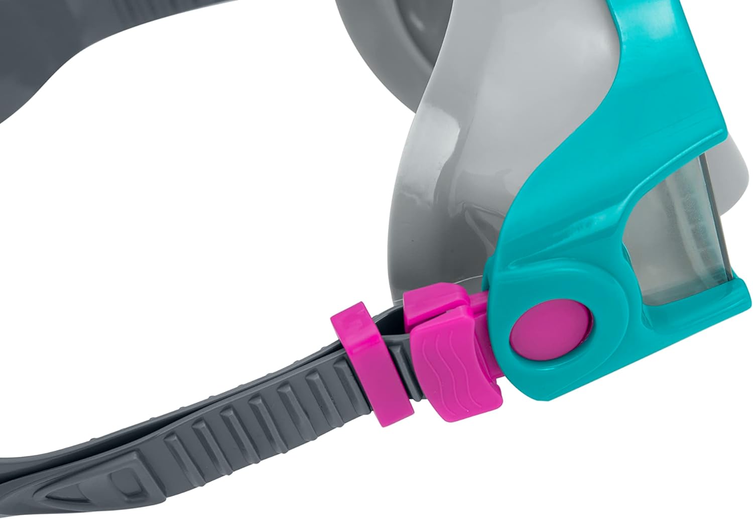 عدسات واقية من الأشعة (UV Protection): عدسات عالية الجودة تحمي عينيك من أشعة الشمس الضارة أثناء السباحة على السطح، وتوفر رؤية حادة وواضحة تحت الماء.