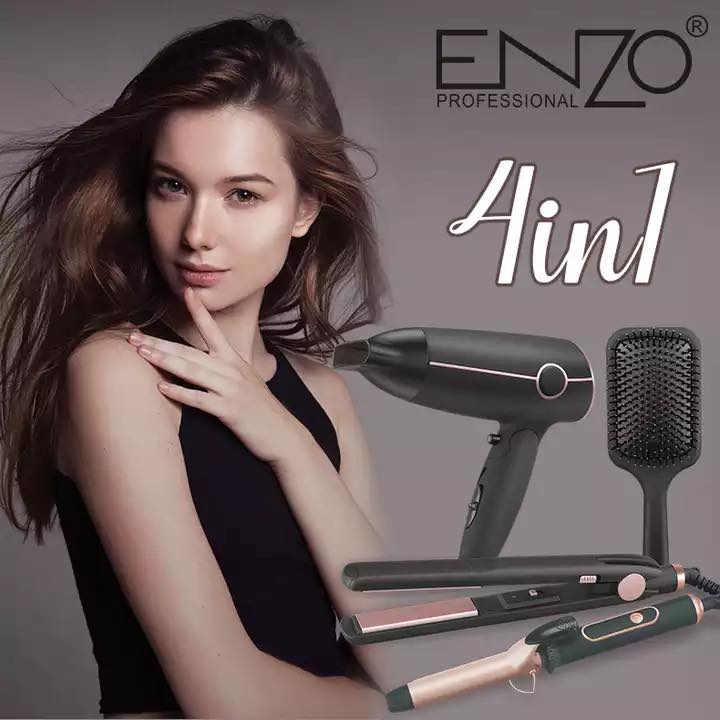 PACK Original Enzo Professional kit 4en1 ( Séchoir + Brosse chaufante +Lisseur + Boucleur ) EN-6302