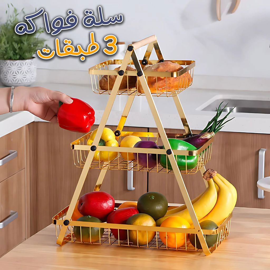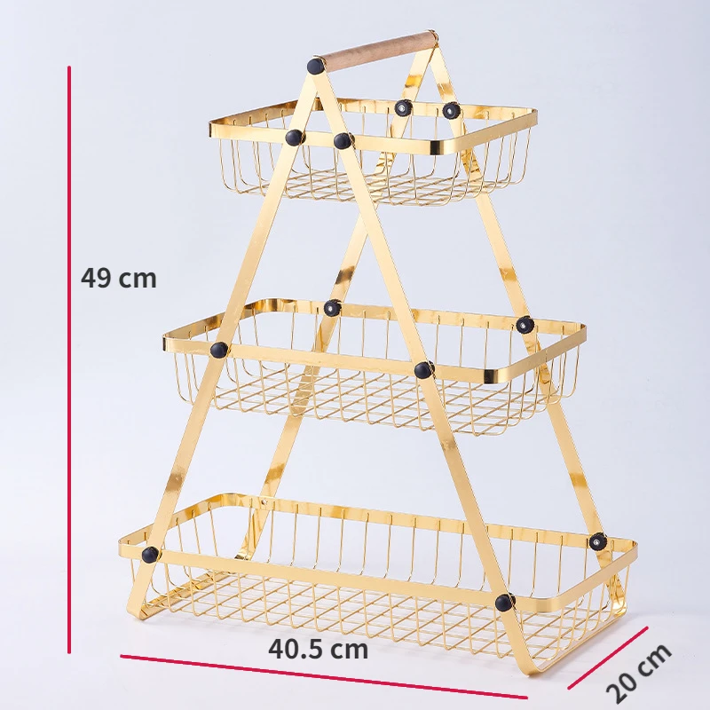 Panier à fruits et légumes 3 étages doré en Acier inoxydable