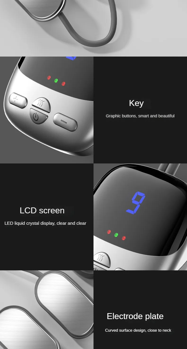 Couleur: Argent, Noir, Rouge • Article: Massager suspendu au cou • Capacité de la batterie: 550Ah • Matériel: ABS • Tension nominale (V): 5v/1A • Puissance nominale (W): 5W Caractéristiques: • 1. Technologie TENS + EMS à double impulsion, masser profondément les muscles, détendre la colonne cervicale, soulager la fatigue du cou et améliorer efficacement divers problèmes de cou tels que la tension des épaules et du cou, la douleur, la douleur, la raideur et l'inconfort. • 2. La compresse chaude à trois niveaux à température constante (42/47/52) peut favoriser efficacement la circulation sanguine, déboucher les vaisseaux sanguins, soulager les douleurs cervicales et soulager la pression du rachis cervical. • 3. 4 modes de massage, 9 intensité réglable, vous pouvez librement ajuster selon votre tolérance et vos préférences personnelles. • 4. Corps petit et léger, design innovant de style pendentif, confortable à porter, facile à transporter, profitez d'un massage confortable à tout moment, n'importe où. • 5. Les coussinets d'électrode de conception ergonomique sont conformes à 270 ° aux courbes de différentes parties du corps, telles que les jambes, les bras, les épaules et le cou. Liste d'emballage: • 1 * Cou Massager • 1 * câble de chargement USB • 1 * Anglais Manuel de l'utilisateur