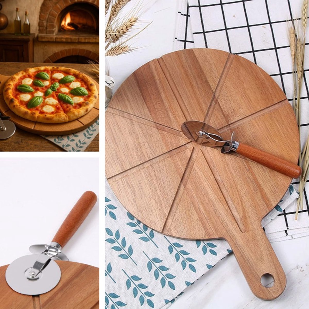 طقم متكامل: تأتي اللوحة مع قطاعة بيتزا دائرية (Roulette) حادة وانسيابية، مصممة لتنزلق داخل الأخدود وتمنحك قطعاً نظيفة من أول تمريرة.