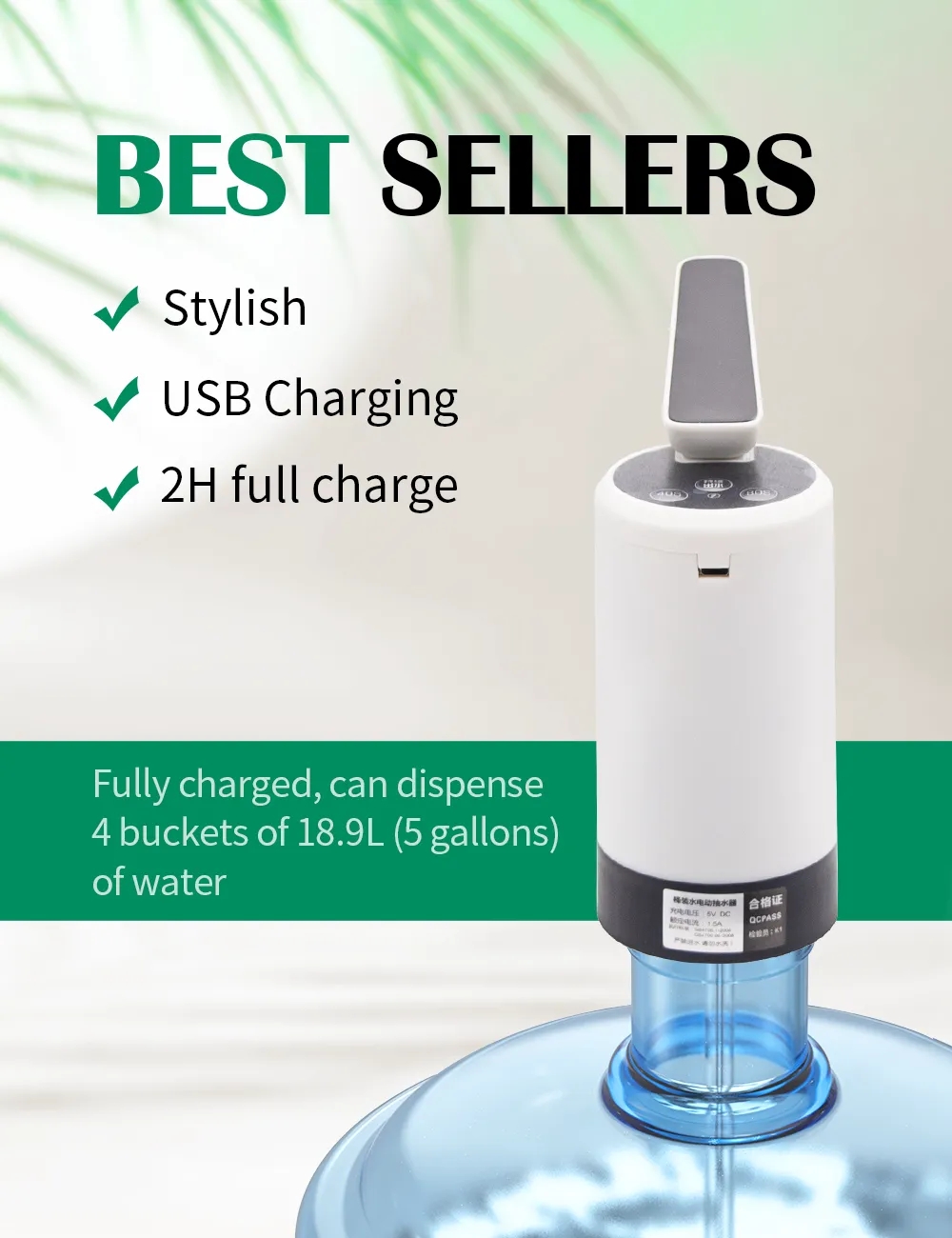 Pompe Distributeur D’eau électrique charge USB Pour Bouteilles v3