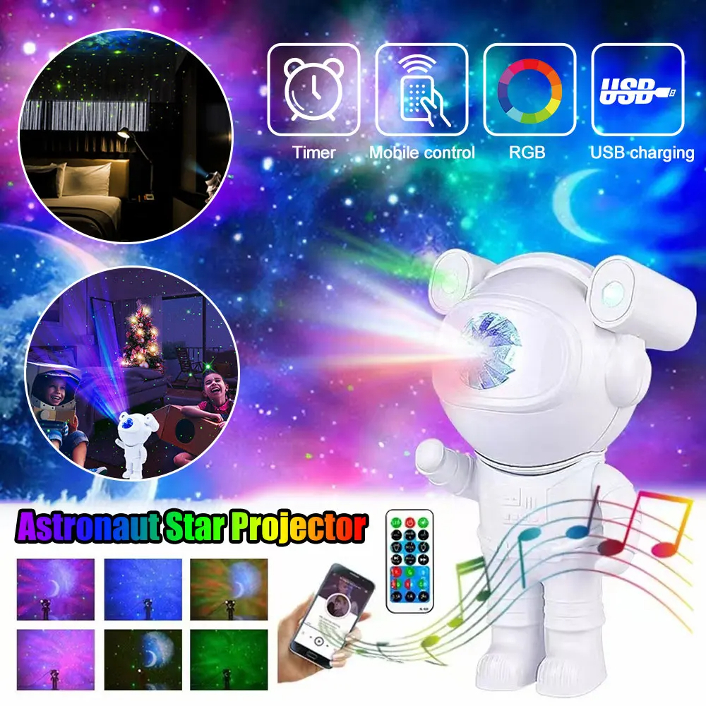 Caractéristiques • 【Avec fonction de haut-parleur Bluetooth 】 -- Comparé à l'ancien style, nous ajoutons la fonction de haut-parleur Bluetooth de ce style, vous pouvez le connecter à votre téléphone pour lire de la musique. • 【Projecteur d'étoiles nébuleuses d'astronaute】 -- Cette veilleuse de projecteur d'étoiles présente de nombreuses couleurs de nubula, d'étoile et de lune. Projetez-le sur le mur ou le plafond de votre chambre et il apportera la galaxie pour vous, créant une atmosphère paisible et relaxante. Une grande lumière ambiante pour la nuit de film, la nuit de date ou les configurations de jeu. • 【Angle de projection ajustable 】-Le projecteur étoilé de veilleuse de nébuleuse étoilée est conçu pour ressembler à un astronaute, et la tête de l'astronaute est connectée magnétiquement au corps, ce qui est pratique pour ajuster l'angle de projection de la nébuleuse. • 【Télécommande et minuteur】-Vous pouvez utiliser la télécommande pour ajuster le motif, la luminosité et la vitesse de rotation afin de personnaliser l'effet de projection que vous aimez. Les motifs d'étoiles ou de nébuleuses peuvent être utilisés simultanément ou séparément. En outre, vous pouvez régler la minuterie, auquel cas le projecteur de veilleuse étoilée s'éteint automatiquement après vous être endormi sous un ciel étoilé. • 【Convient à de nombreuses occasions】 -- Le projecteur de constellation de plafond en étoile peut être utilisé dans le salon, le home cinéma, la salle de jeux, la chambre à coucher, offre une atmosphère cool pour les soirées de rendez-vous, les configurations de jeux, les soirées cinéma, fêtes ou utilisé comme veilleuse pour accompagner les enfants lorsqu'ils vont dormir. • 【Un cadeau incroyable pour les enfants et les adultes 】 -- Si vous ne savez pas quoi offrir à votre famille ou à vos amis, ce projecteur étoile de veilleuse d'astronaute est une option de cadeau idéal pour les vacances (Noël, la Saint-Valentin, les anniversaires, etc.) Liste des paquets • 1 * lampe de projecteur • 1 * câble de charge USB • 1 * Télécommande