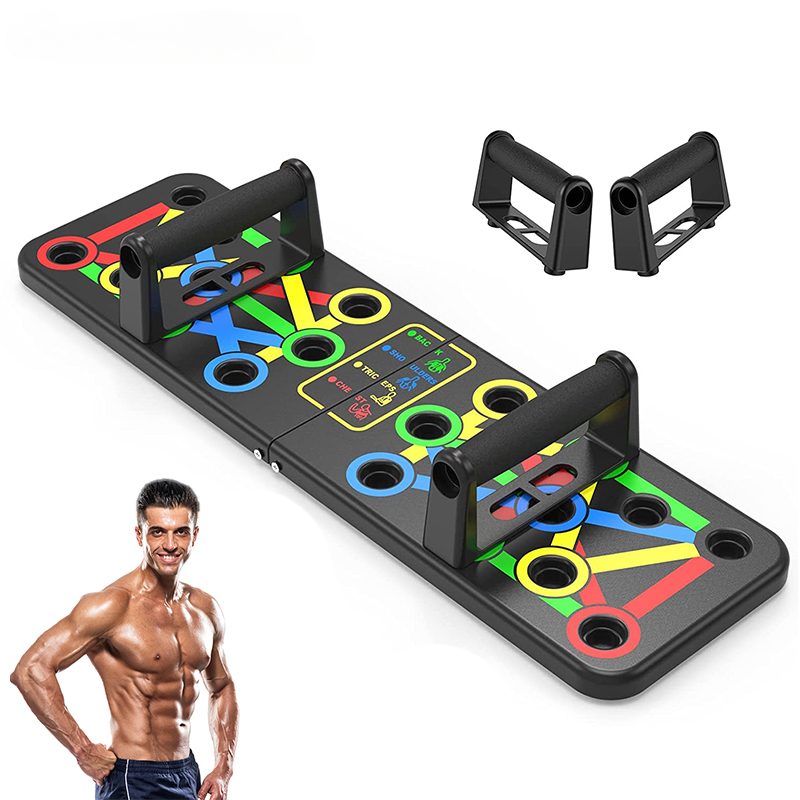 Description du produit • Avec plus de 30 combinaisons de positions, • La planche push-up offre un entraînement complet du corps en seulement 30 minutes. • Cette machine push-up est codée par couleur pour inclure des zones désignées pour les triceps, le dos, les épaules et la poitrine. • Et il favorise une forme appropriée pour optimiser vos compétences de collecte et réduire les erreurs que d'autres conceptions ne peuvent pas. • Résiste à des poids importants de 300 livres et jusqu'à 600 livres de force. • L'utilisation de plastique ABS très solide, offrant une excellente résistance aux chocs et à la chaleur. • La poignée antidérapante aide à répartir uniformément la force, • Réduisant ainsi le stress et la pression articulaire sur les poignets et les coudes des athlètes. • Vous fournit une planche de push-up pliable qui est légère, • Petit et facile à transporter. Que vous soyez à la maison, • Bureau ou salle de sport, vous pouvez l'utiliser pour profiter de votre entraînement, • Perdre du poids et construire du muscle n'importe où, n'importe quand. Même pendant un exercice intense, • Le bouchon antidérapant robuste maintiendra la planche fermement en place. • Restez stable sur le carrelage, la moquette, le bois, le béton, etc.