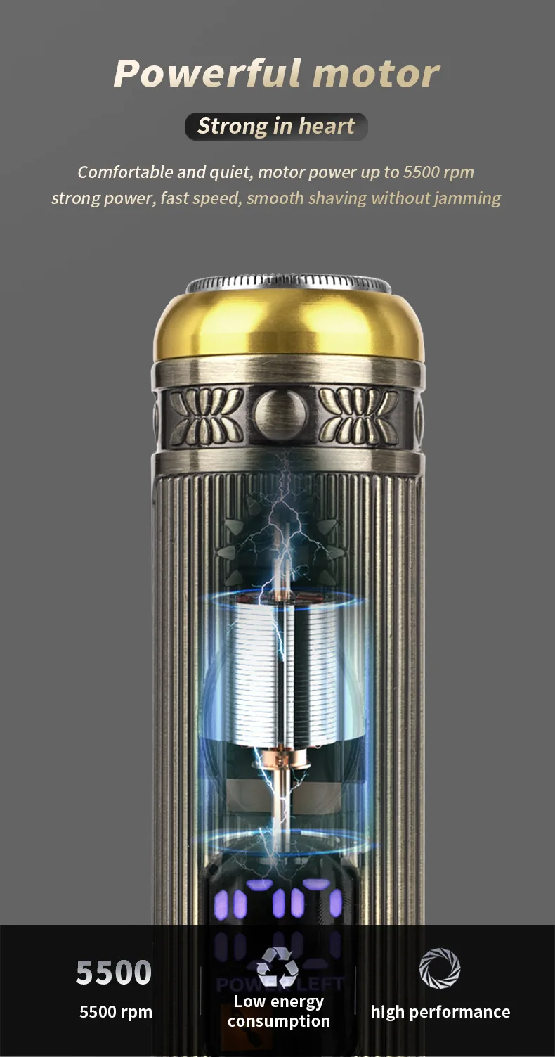 Caractéristiques principales: • Rasoir 3 en 1 avec adaptateurs interchangeables • Il peut être utilisé aussi bien avec ou sans fil • Batterie intégrée • Adaptateurs : tête de rasoir, tondeuse nez, tondeuse • Indicateur de charge • Étanche • Capacité de la batterie intégrée: 1200mAh - 2000mAh (incluse) • Batterie intégrée: Batterie intégrée • Bruit: inférieur à 36dB
