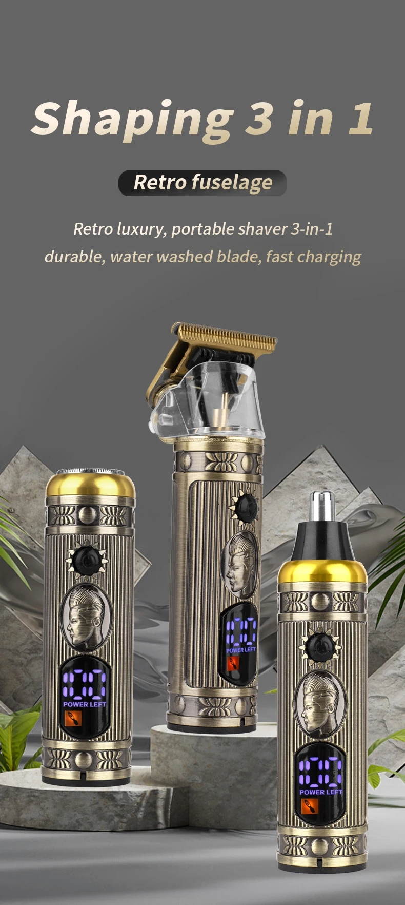 •417 تقييم•تم بيع +893Rasoir professionnel multifonction 3en1 Étanche en acier Rechargeable USB