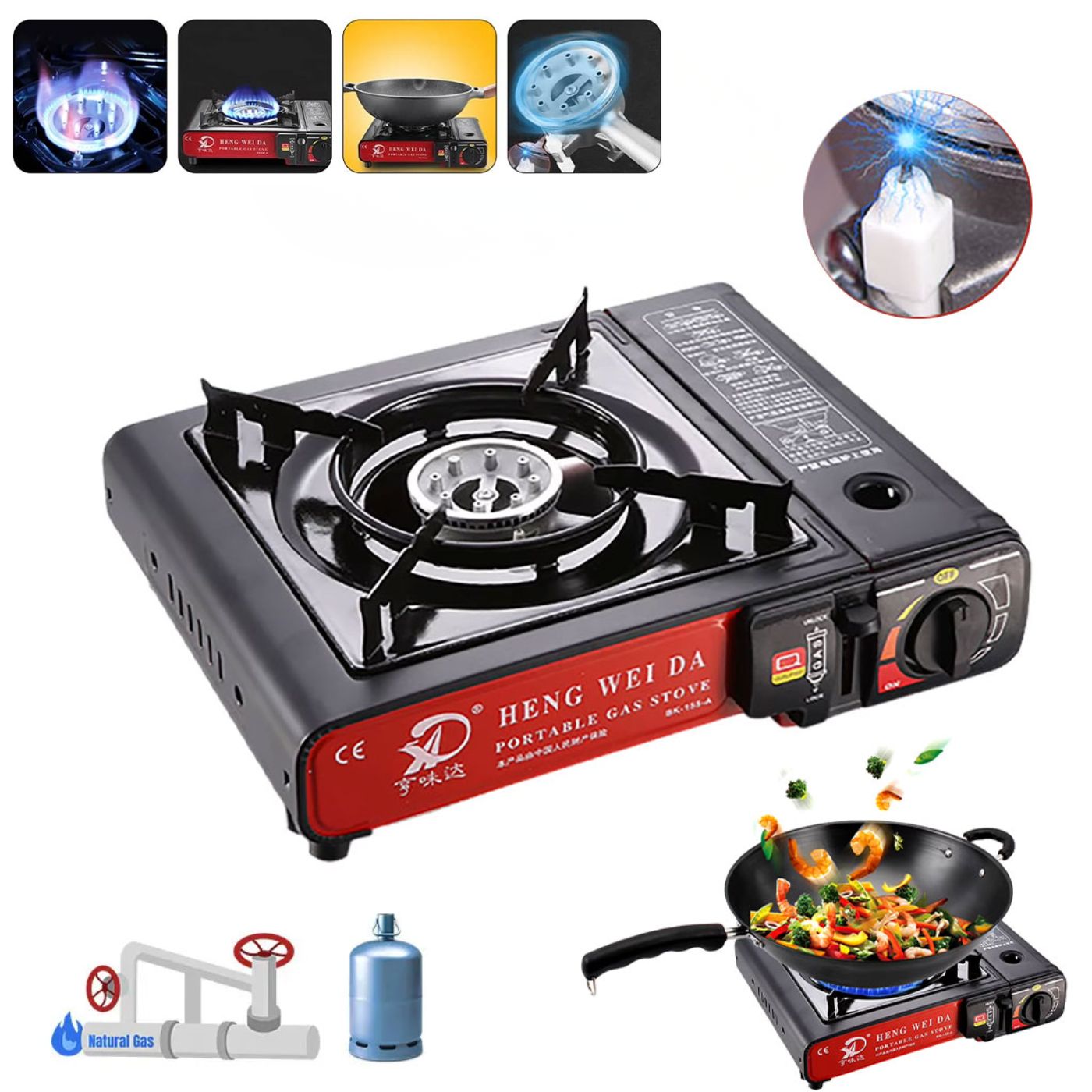 ثبات وحماية: مصمم ليكون ثابتاً على مختلف الأسطح، مع حماية للهب من الرياح لضمان استمرار عملية الطبخ دون انقطاع.