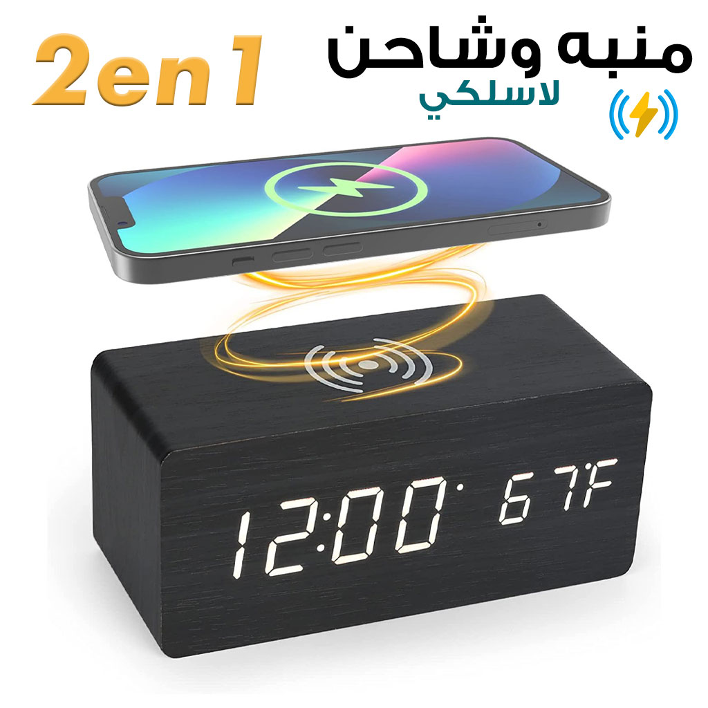 ⏰ ساعة رقمية LED مع شحن لاسلكي – أنيقة وعملية