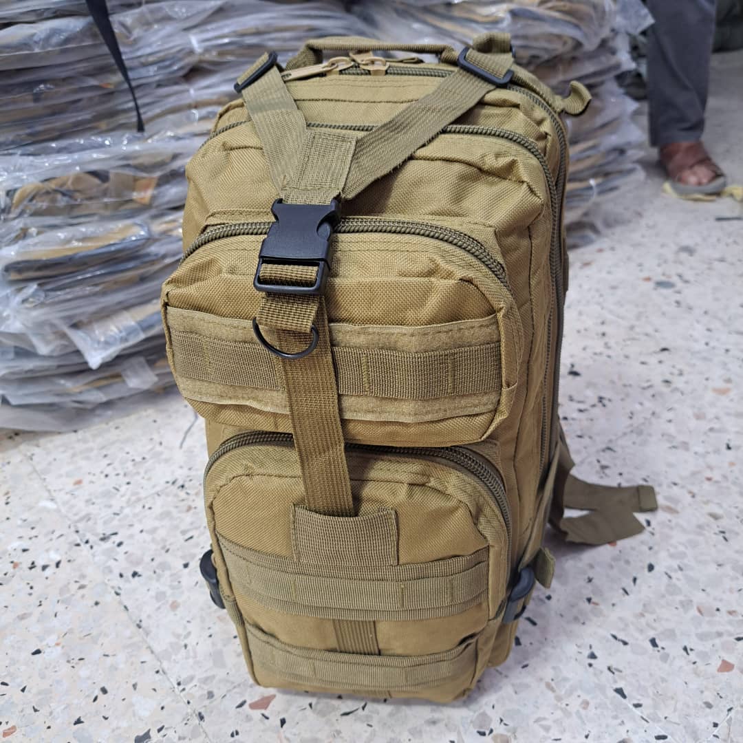 Désignation : • Fabriqué en toile nylon résistante • Système de fixation Molle pour y ajouter d'autres accessoires compatibles • Équipé de nombreux compartiments, poches et poches filet pour faciliter le rangement • Le dos et les bretelles sont rembourrés et munis d'une maille respirante pour plus de confort par temps plus chaud • Idéal pour la randonnée ou autres activités outdoor • Grande capacité de 30 litres Caractéristiques : • - Matière Nylon résistant • - 2 grands compartiments principaux faciles d'accès avec différents zip et poches filet (le plus grand compartiment s'ouvre entièrement à plat avec une fermeture éclair à double sens pour une ouverture/fermeture rapide) - Grande poche de rangement sur l'avant et une poche frontale zippée supplémentaire - Compartiment bande autoagrippante pour une poche d'hydratation - Contrôle du volume et de la fixation des bagages avec sangles de compression latérales - Bretelles ergonomiques, ajustables et rembourrées - Sangle ventrale ajustable avec clip de fermeture rapide - Dos rembourré • - Dos et bretelles revêtues d'une maille respirante • - Oeillets pour la fixation de matériel supplémentaire • - 1 poignée de transport pour une utilisation à la main • - Système de fixation Molle à droite, à gauche et sur le devant pour l'ajout d'autres accessoires et sacoches • - Support velcro sur le devant pour la personnalisation à l'aide de patch • - Contenance de 30 litres • - Dimension : hauteur 43cm x largeur 24cm x profondeur 22cm