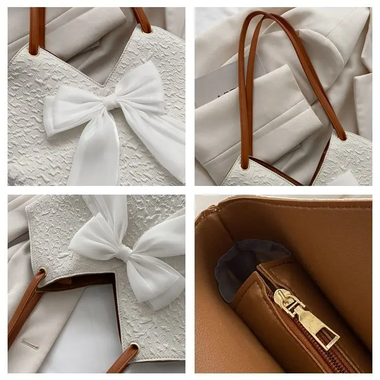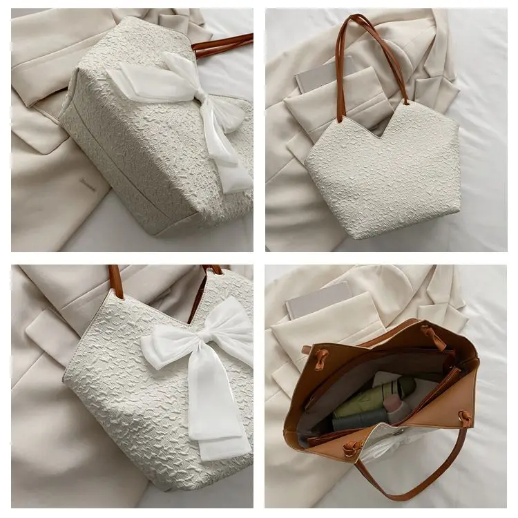 •138 تقييم•تم بيع +652Sac seau avec nœud pour femmes de grande capacité automne 2024
