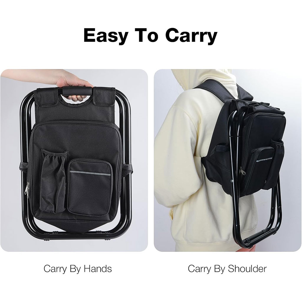 Design portable : le tabouret sac à dos se replie complètement lorsqu'il n'est pas utilisé et est facile à transporter. Il se plie facilement pour voyager, se ranger et se glisser dans le coffre de votre voiture, pour l'emporter partout avec vous. Un équipement professionnel et idéal pour le camping, la randonnée, la chasse, l'escalade, la pêche, les pique-niques et autres activités de plein air. • 【Multifonction 3 en 1】Sac à dos, glacière isotherme et chaise. La chaise isotherme est dotée d'une assise légère, de bretelles respirantes et d'épaules larges pour un confort optimal. Son design ergonomique offre une stabilité accrue. Une fois pliée, la chaise isotherme est compacte, facile à transporter et à ranger. • Dimensions de la chaise sac à dos : Dimensions de la chaise : 42,5 x 35,5 x 27,7 cm. Dimensions pliée : 48,5 x 35,5 cm. Poids : environ 1,4 kg, charge maximale : 181 kg. • 【Haute qualité et durabilité】La grande surface d'assise est en tissu Oxford doublement enduit de PVC, imperméable, respirant, durable et confortable. Le support en tube d'acier renforcé, fixé par rivet, offre une grande capacité de charge. • 【Rangement suffisant】Cette élégante chaise sac à dos pliante offre un grand espace de rangement avec de nombreuses poches. Deux poches extérieures permettent de ranger une tasse de thé, une bouteille d'eau, un téléphone portable et d'autres effets personnels.