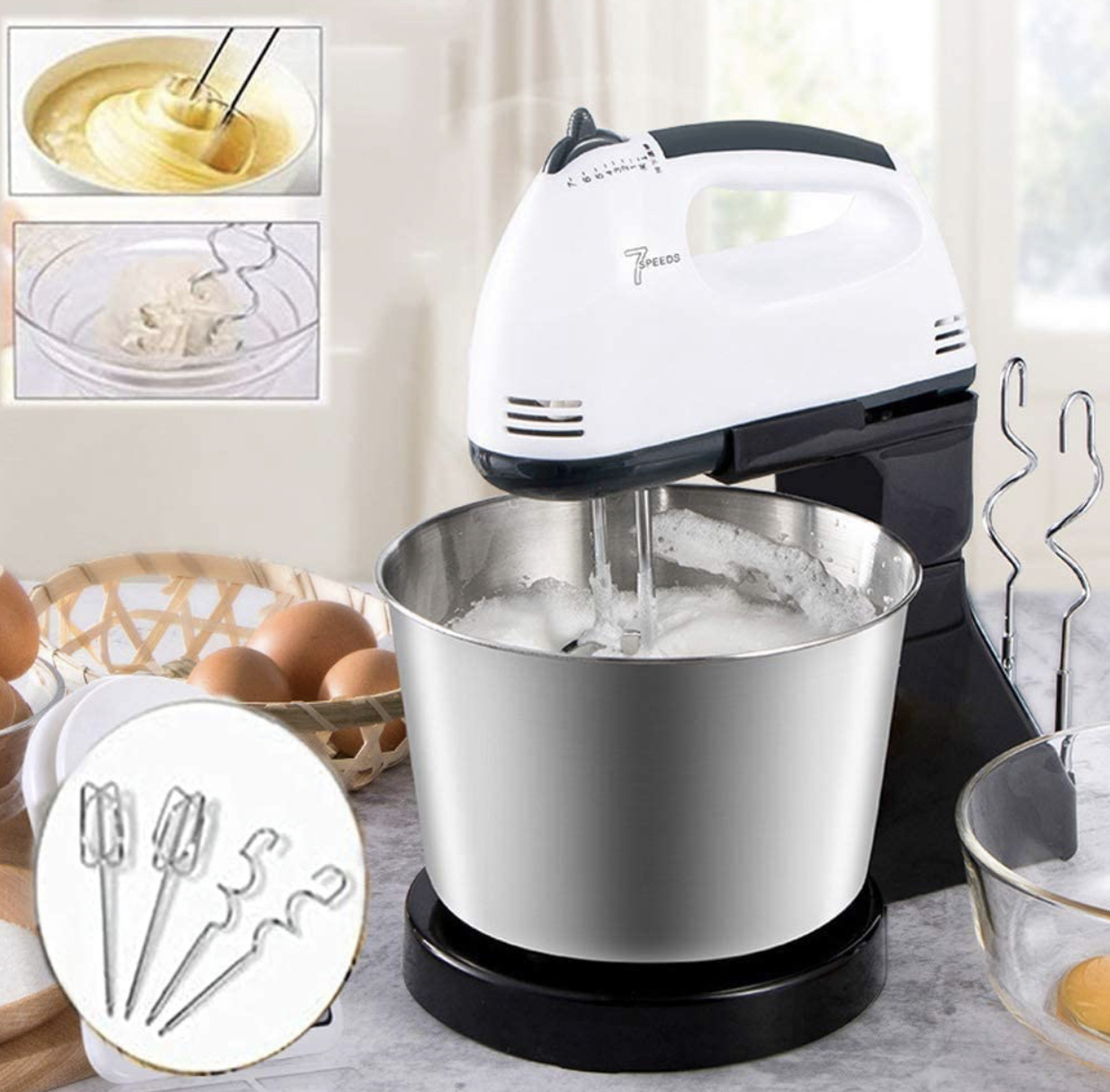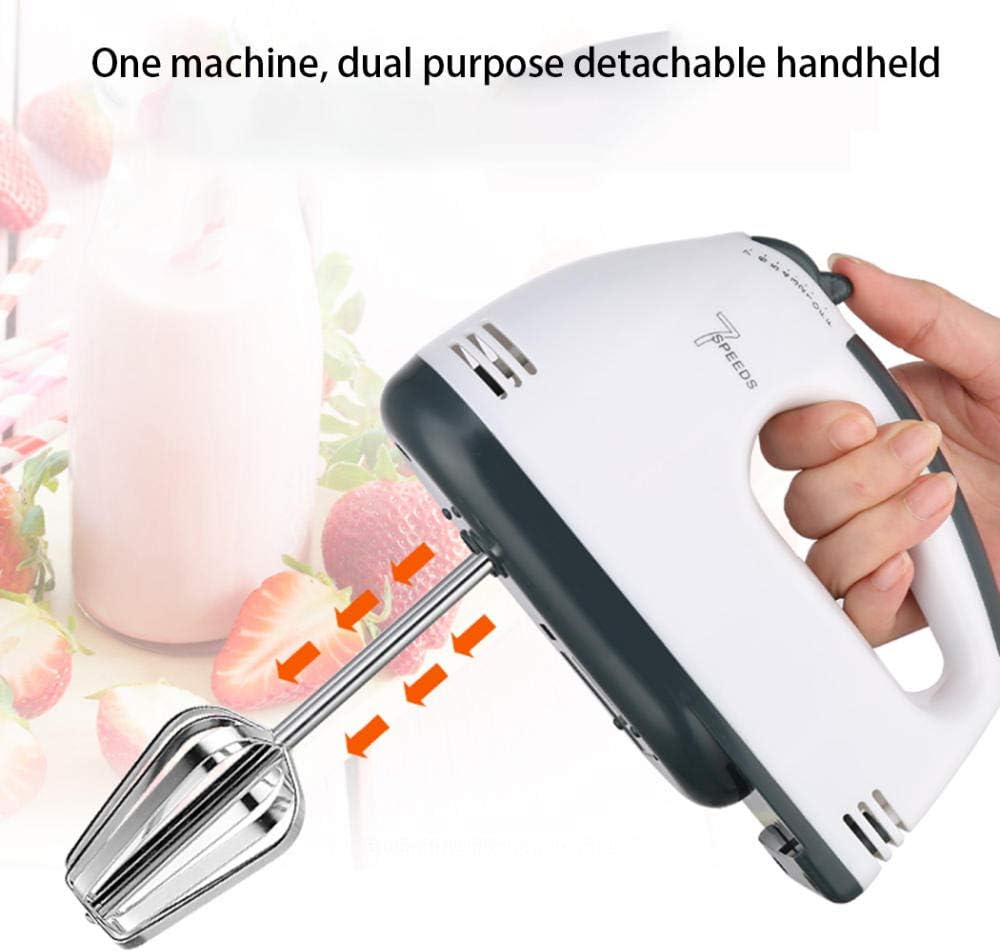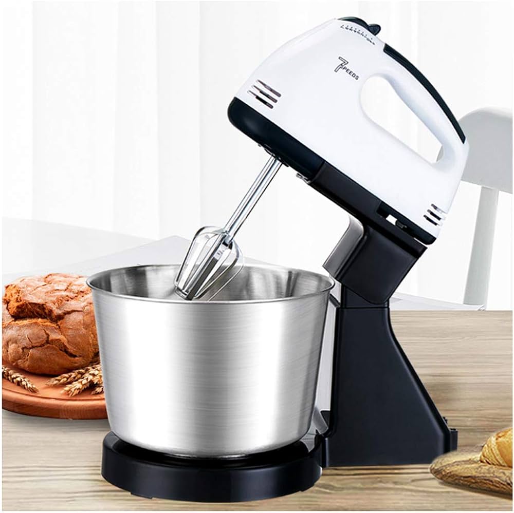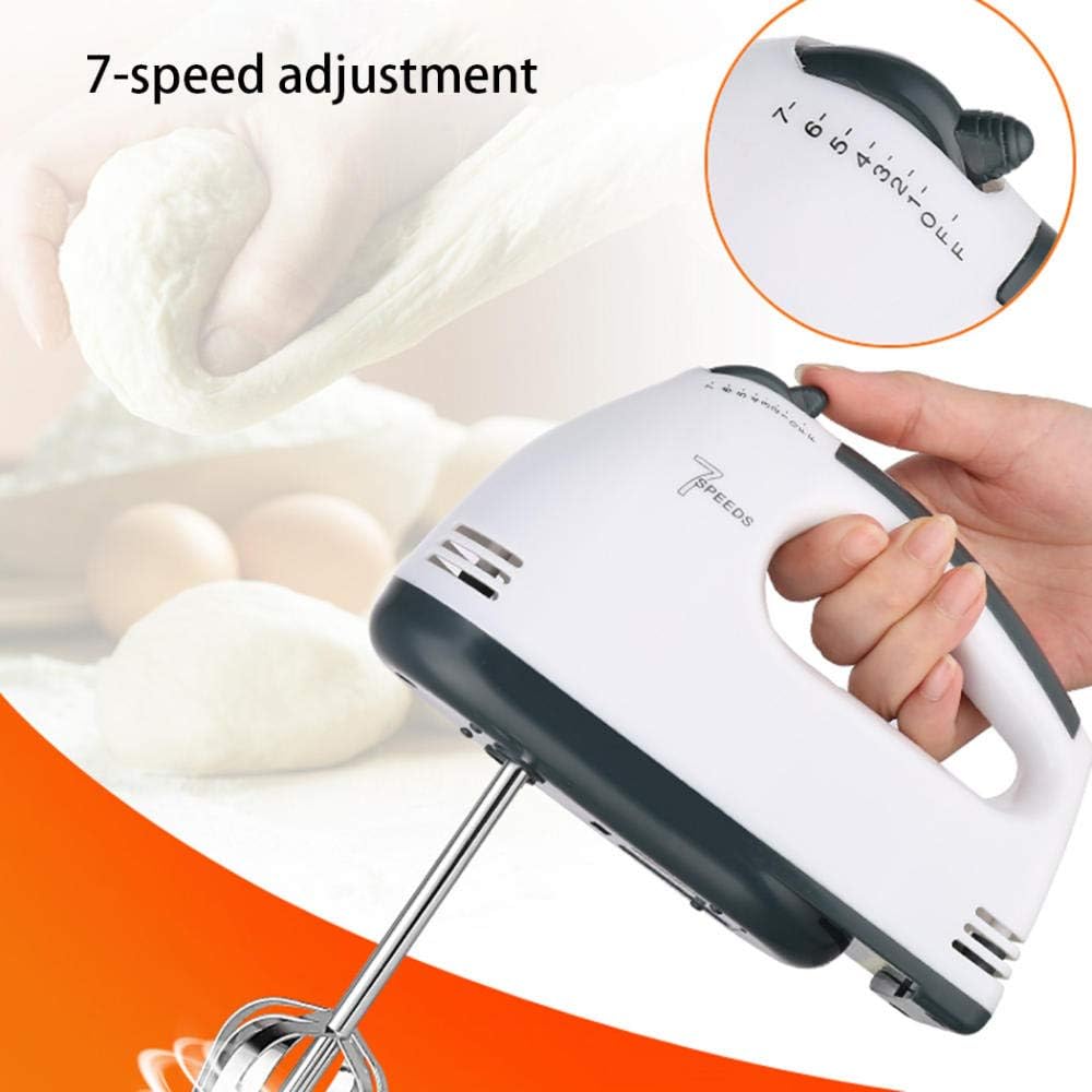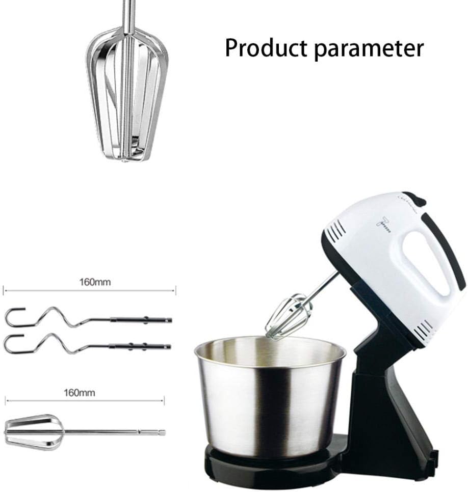 Material : Plastic + Stainless Steel . • Plug Type : EU Plug Rated . • Voltage : 220V Rated . • Frequency : 50Hz Rated . • Power : 200 Watt/ 7 Speeds • Capacity : 2 L Bowl • Features : Portable, Handheld, Multifunctional, Easy to Use, Kitchen Utensil. • Mixer Overall Size : 280 x 165 x 295mm/11.02 x 6.50 x 11.61" (Approx.) • Bowl Diameter: 83mm/3.27" (Approx.) Bowl Height: 130mm/5.12" (Approx.) • Hand Mixers are reliable small appliances for all your baking and cooking needs. • These lightweight mixers are designed for power with 7 speeds that are ideal for mixing, stirring, beating and whipping. Models come equipped with traditional chrome beaters for optimal mixing. • Whether you're mixing ingredients for baking or beating eggs for omelettes, our hand mixers make preparation easy and save you valuable time in the kitchen. • [7-Speeds Switch]:With 7-speed electric egg beater, you are easy and free to make foods what you want.With multi-directional cold and hot air convection heat dissipation. The hand mixer is made of stainless steel and premium plastic, lightweight,You can enjoy your works. • Comfortable Stand. • Removable Bowl. • Beaters release button. • 2 beaters for eggs & Cream. • 2 Dough hooks for mixing dough