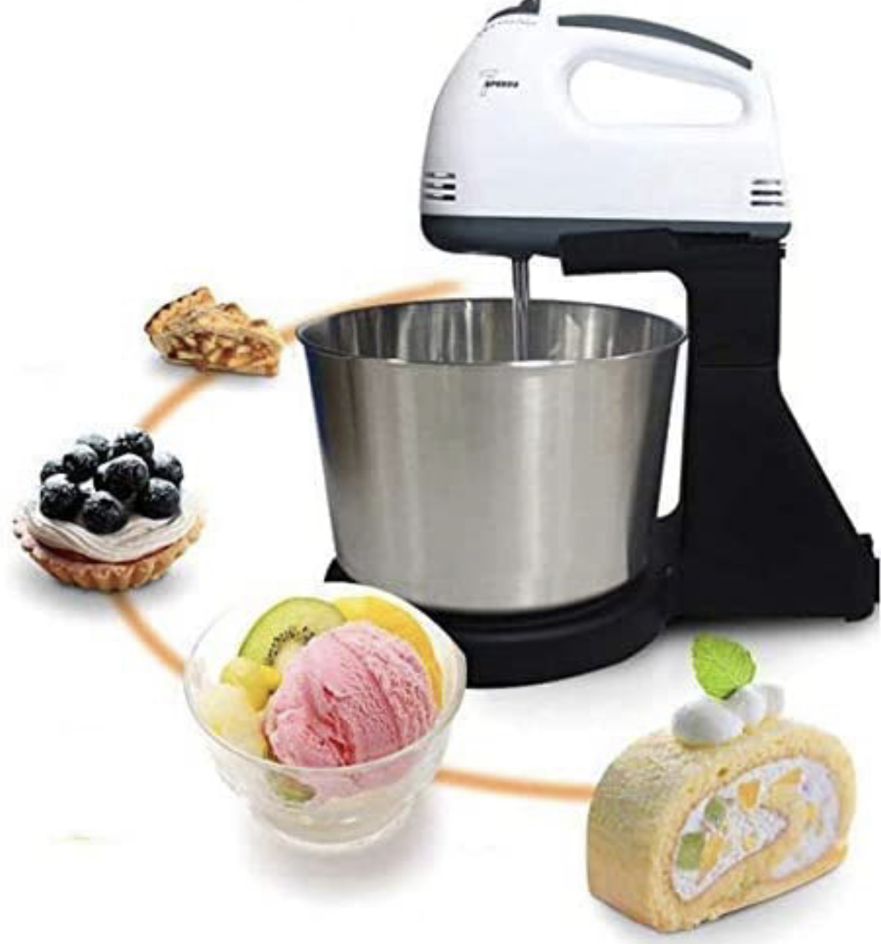 •89 تقييم•تم بيع +1KScarlett Batteur Avec Bol Inox 200W Mini Pétrin 7 Vitesses
