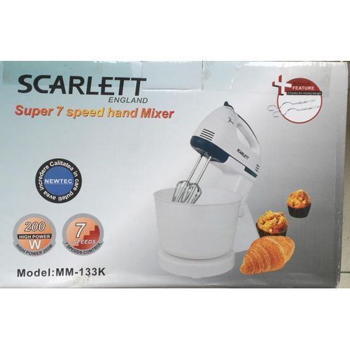 Scarlett Batteur Avec Bol Inox 200W Mini Pétrin 7 Vitesses
